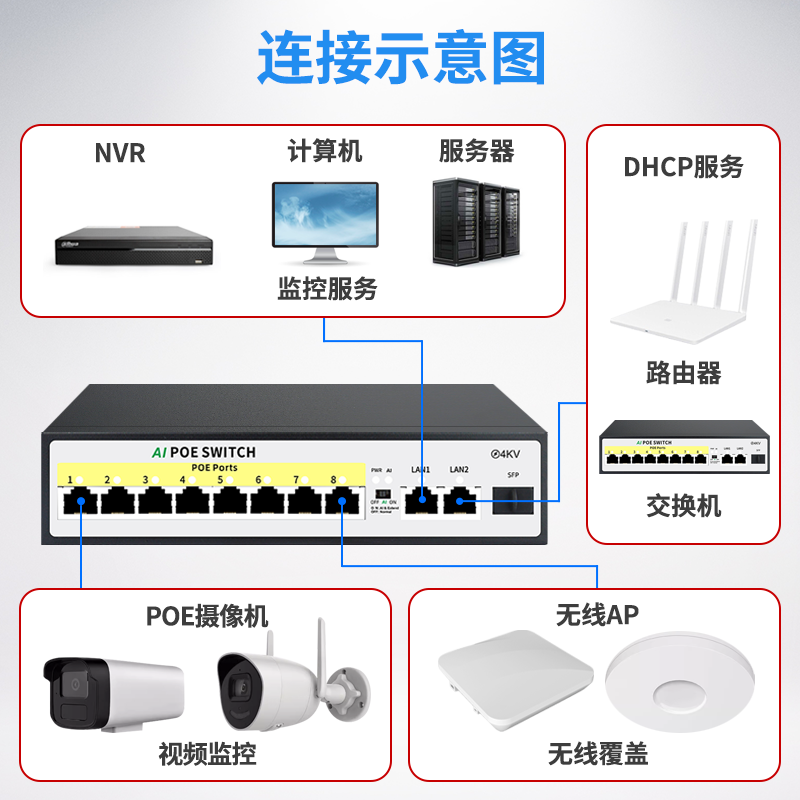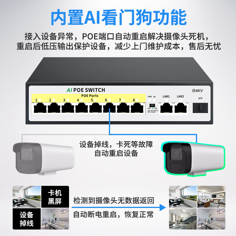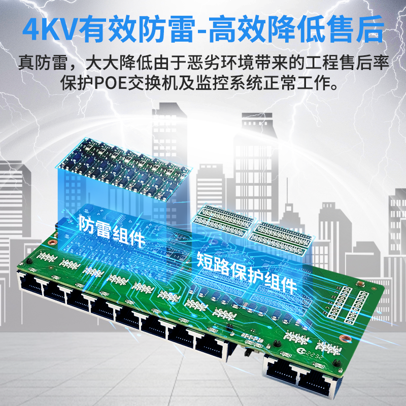 防雷国标48VPOE交换机兼容海康大华摄像摄像