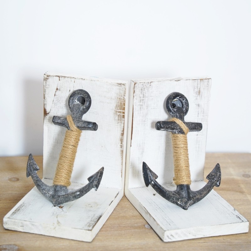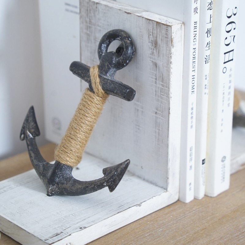 包邮促销 外贸原单 美式乡村风格复古做旧船锚装饰木质书挡书立