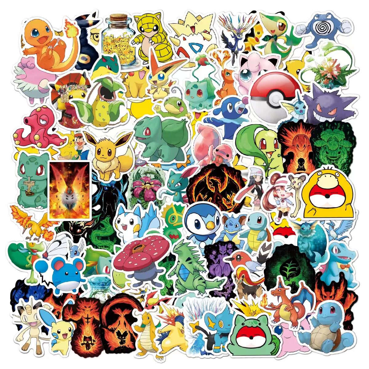 500枚卡通宠物小精灵进化版宝可梦贴纸儿童水杯手机笔记本电脑吉他滑板车电动车头盔摩托车头盔装饰贴画防水