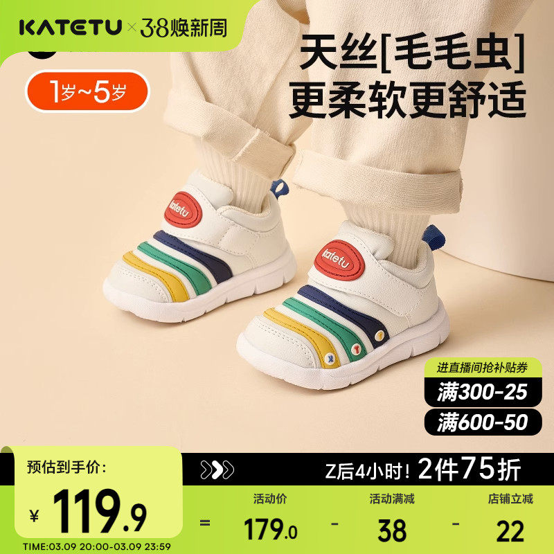 卡特兔童鞋毛毛虫宝宝男童女童软底防滑学步儿童运动鞋