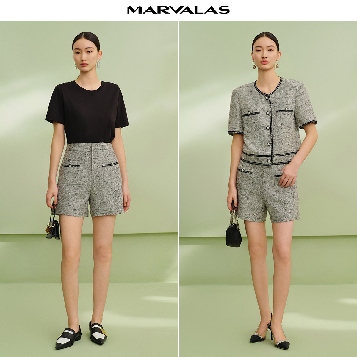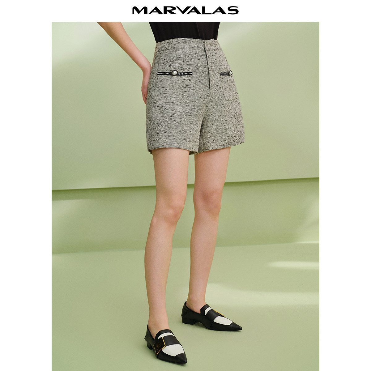 曼德诗小香风高腰短裤2025夏季新款冰丝亚麻A字版型设计感休闲裤