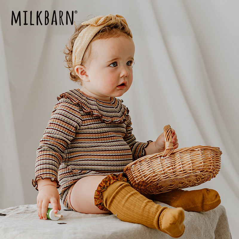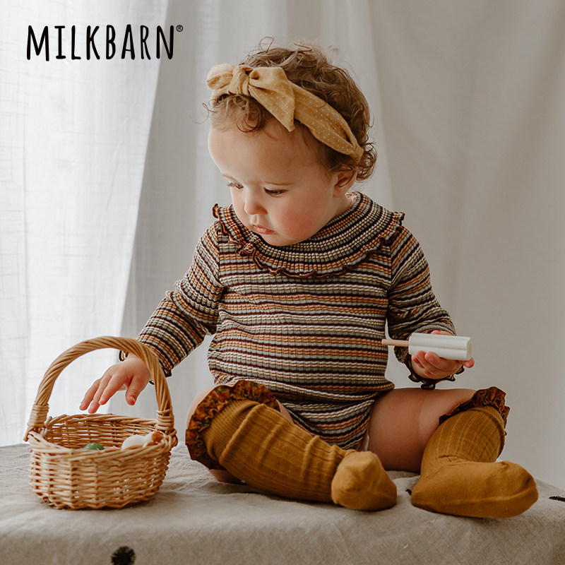 Milkbarn婴儿长袖包屁衣女宝宝秋季纯棉哈衣婴幼儿爬爬服
