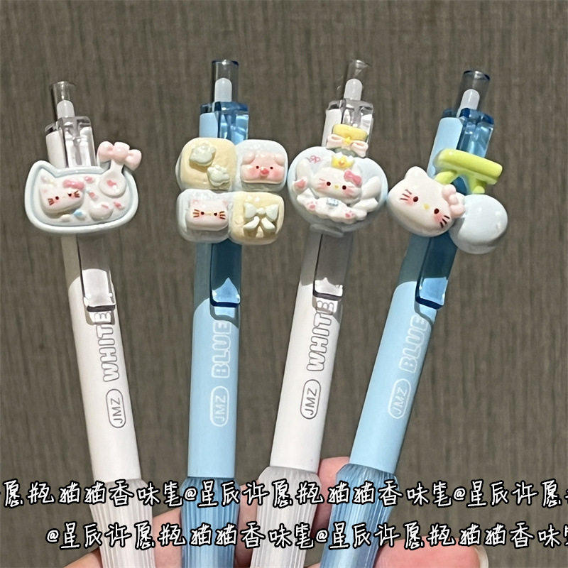 卡通可爱凯蒂猫学生速干刷题笔个性创意高颜值kitty猫香味中性笔