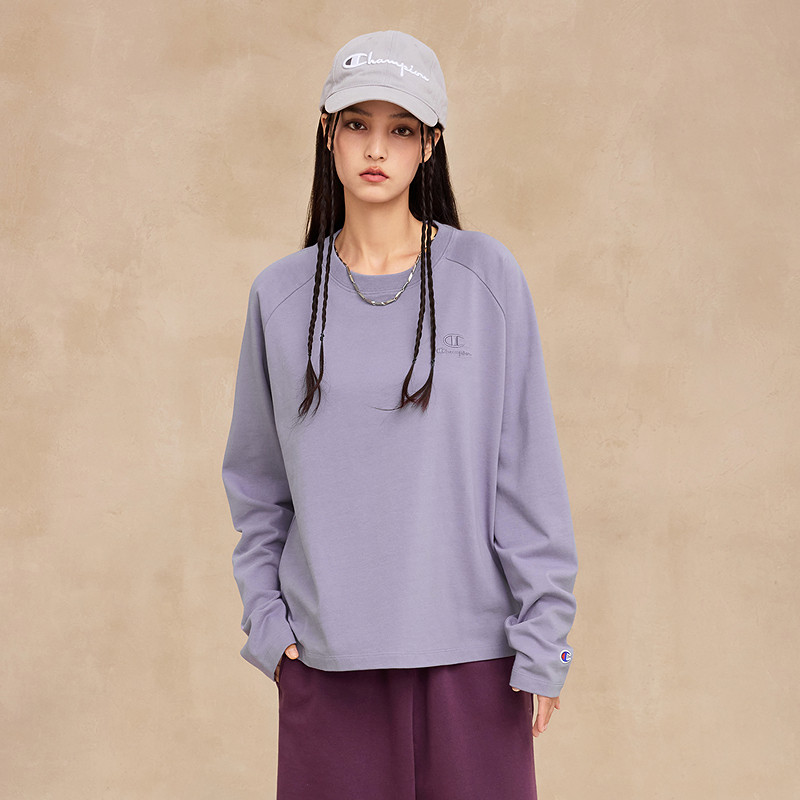 Champion冠军长袖T恤女2026春季新款暮藤紫基础打底衫都市格调风