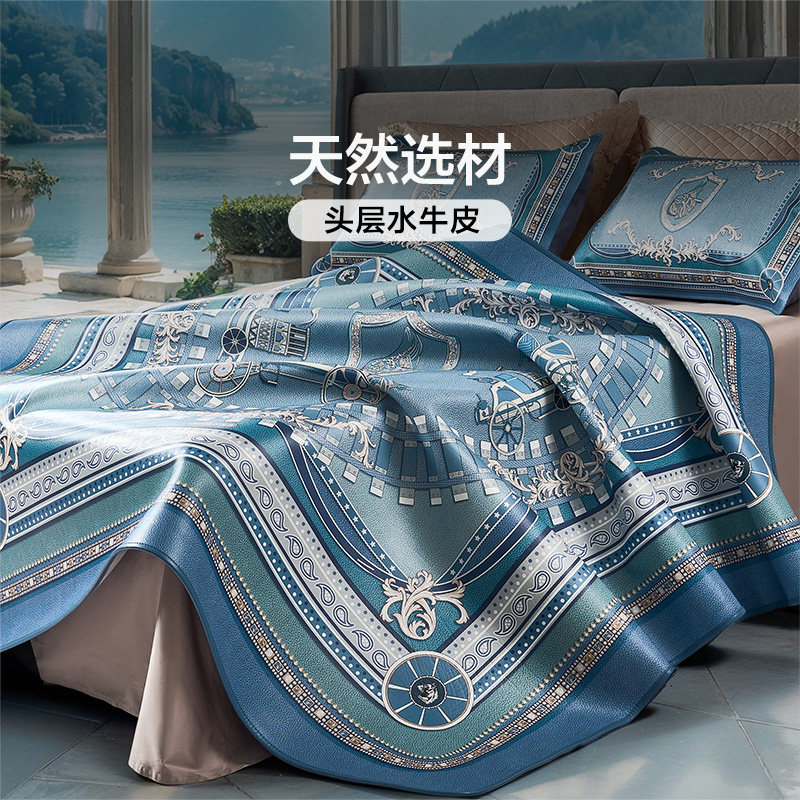 塔山牛皮凉席头层水牛皮纯真皮席子皮凉席高端彩绘软席三件套加厚