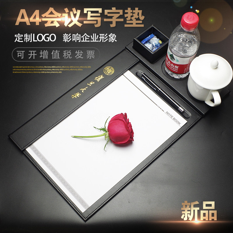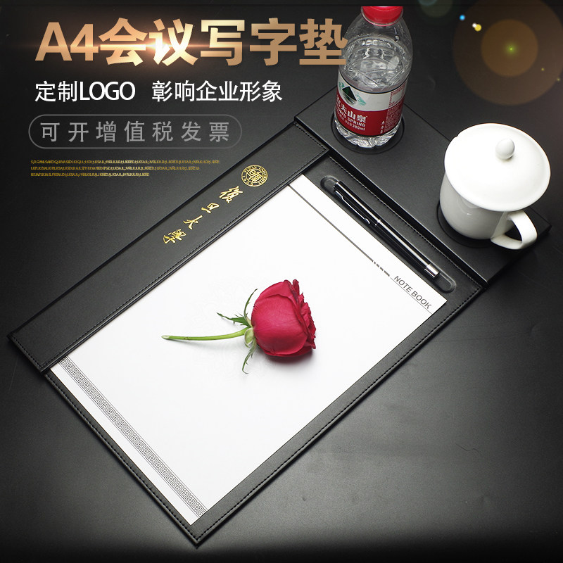 皮质a4会议夹垫板商务写字w便签夹桌台板垫茶水杯孔W酒店用品定制