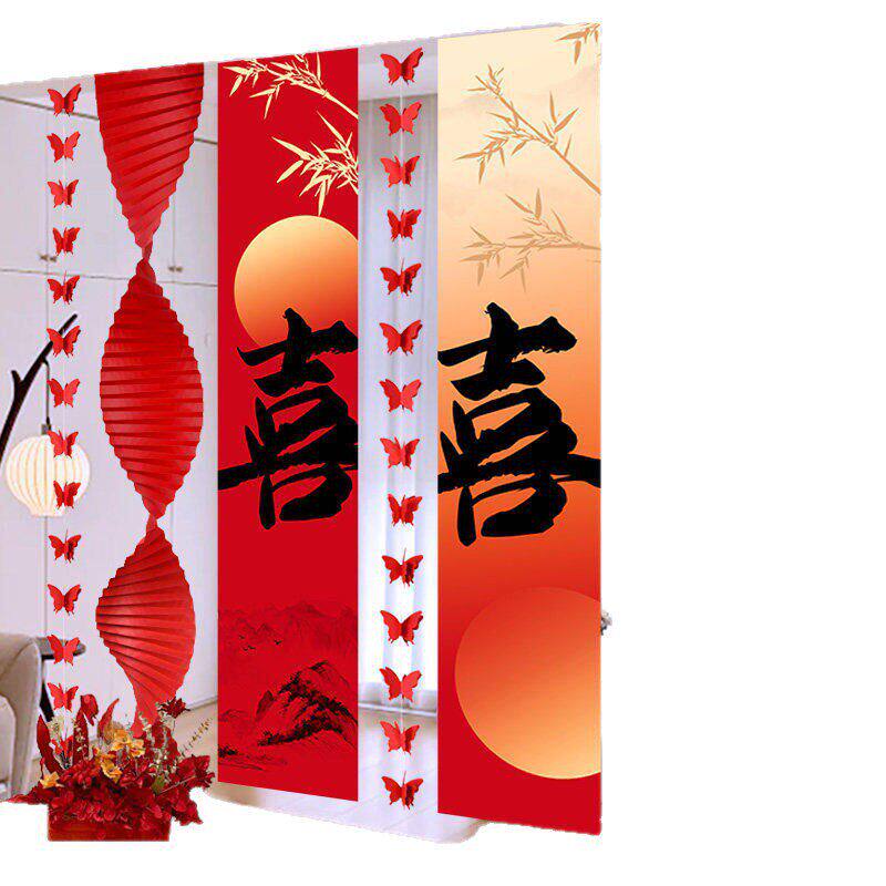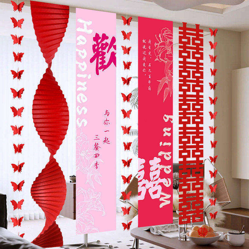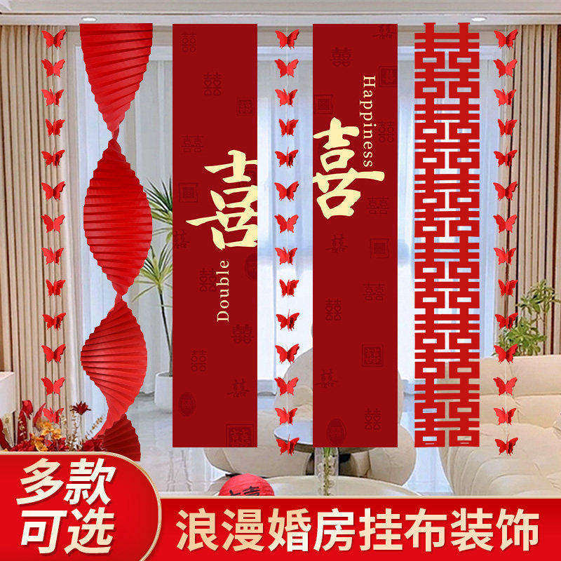 结婚窗帘装饰拉花挂饰婚礼婚房新房布置男方女方卧室客厅长条喜字