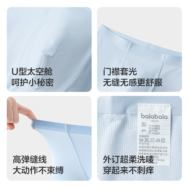 巴拉巴拉男童冰丝内裤平角儿童四角短裤不夹PP中大童亲肤萌三条装