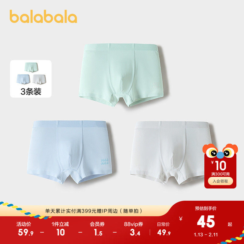 【balaOne】巴拉巴拉儿童内裤棉男童不夹pp抗菌裆四角短裤三条装