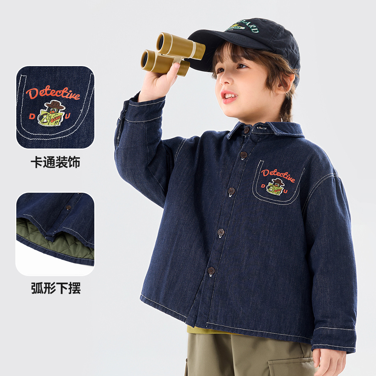 嘟嘟家男童牛仔外套儿童衬衫宝宝棉衣三层夹棉上衣秋冬季加厚时髦