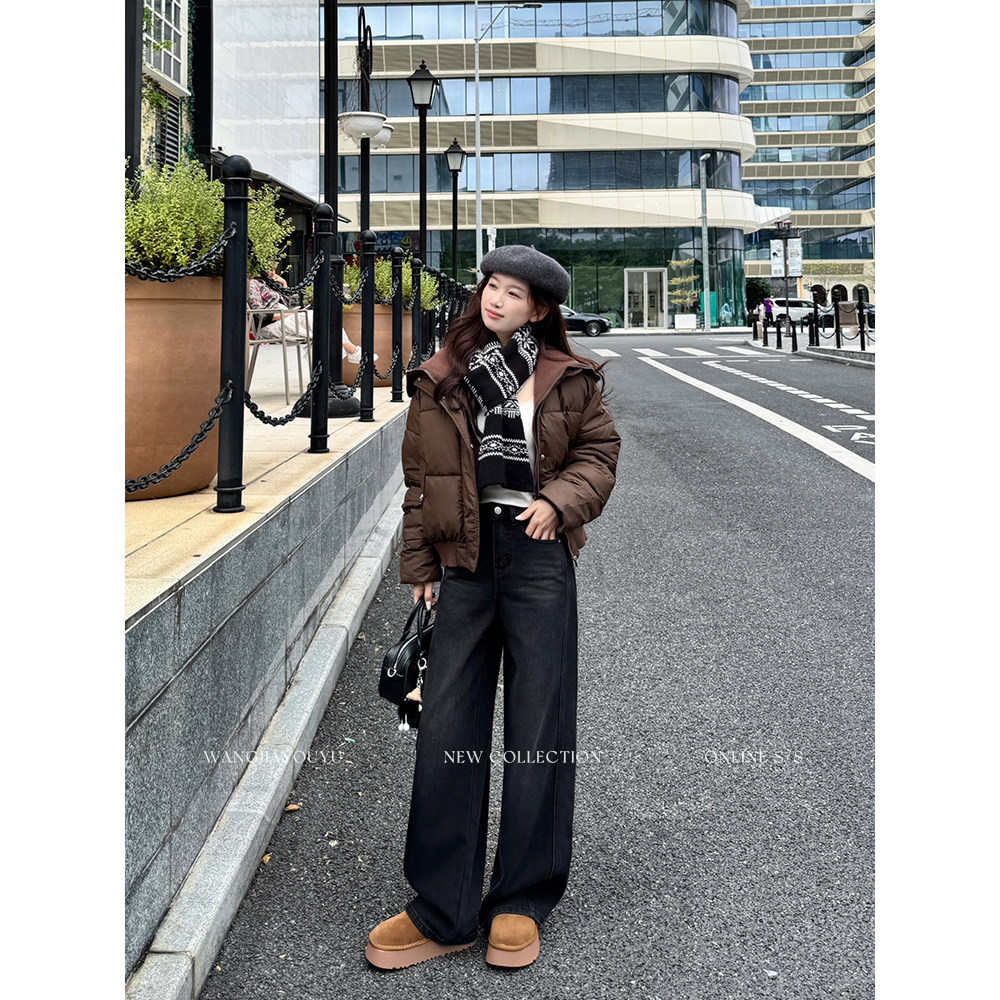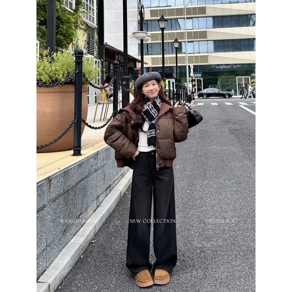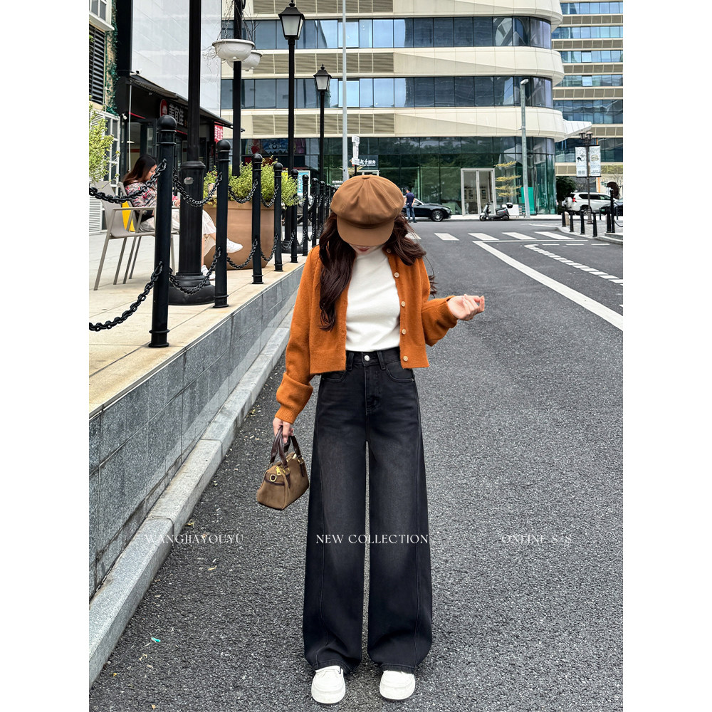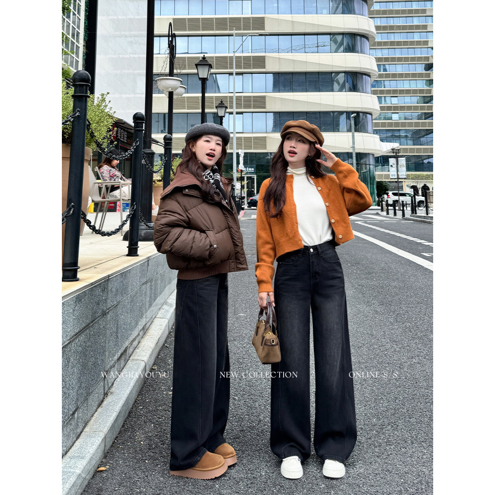 王家有鱼秋冬新款加绒阔腿裤2025百搭修身显瘦宽松直筒牛仔裤子女