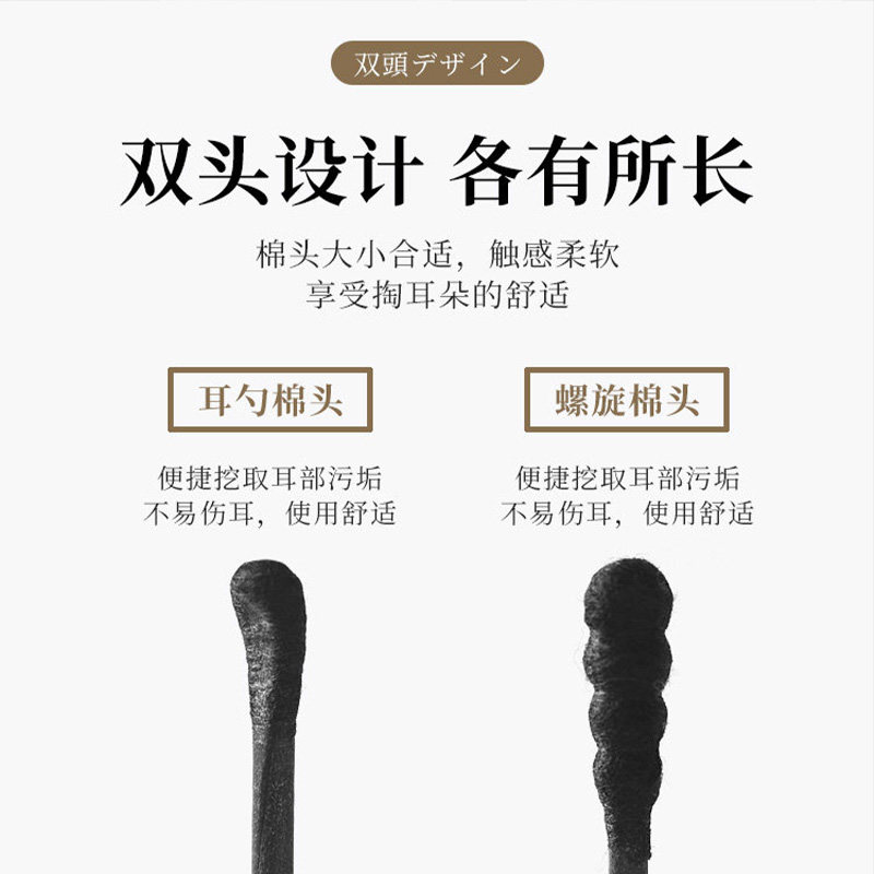 掏耳朵棉签黑色挖耳勺耳道专用棉棒一次性儿童双头棉花棒神器耳部