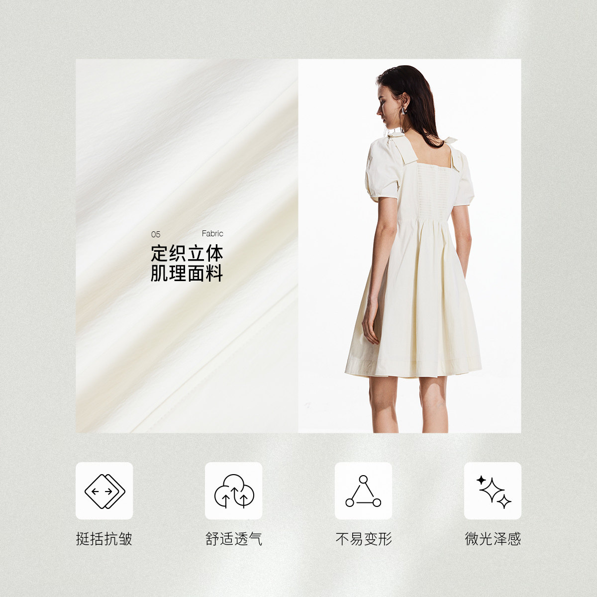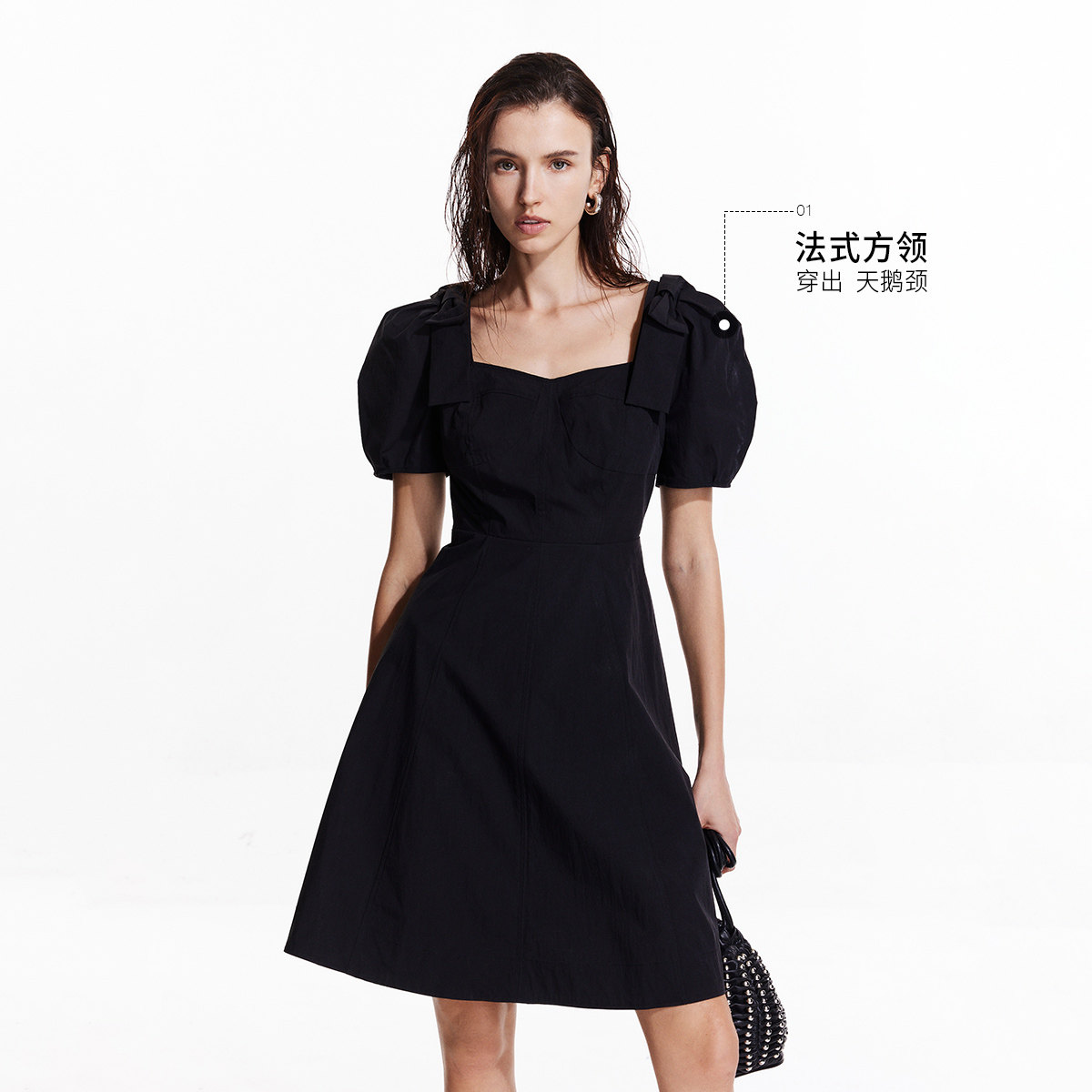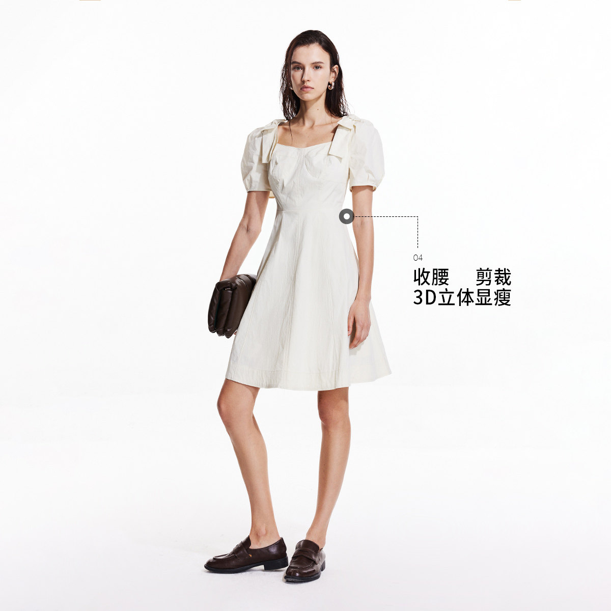 【ONLY奥莱】春季新款复古蝴蝶结纯色高腰泡泡袖伞裙短裙连衣裙女