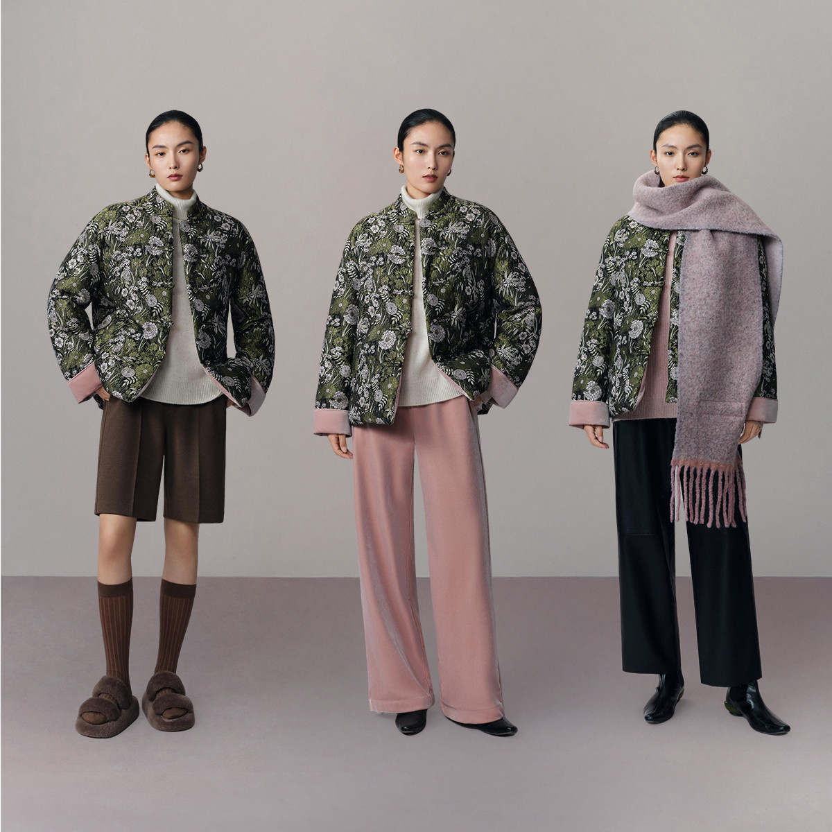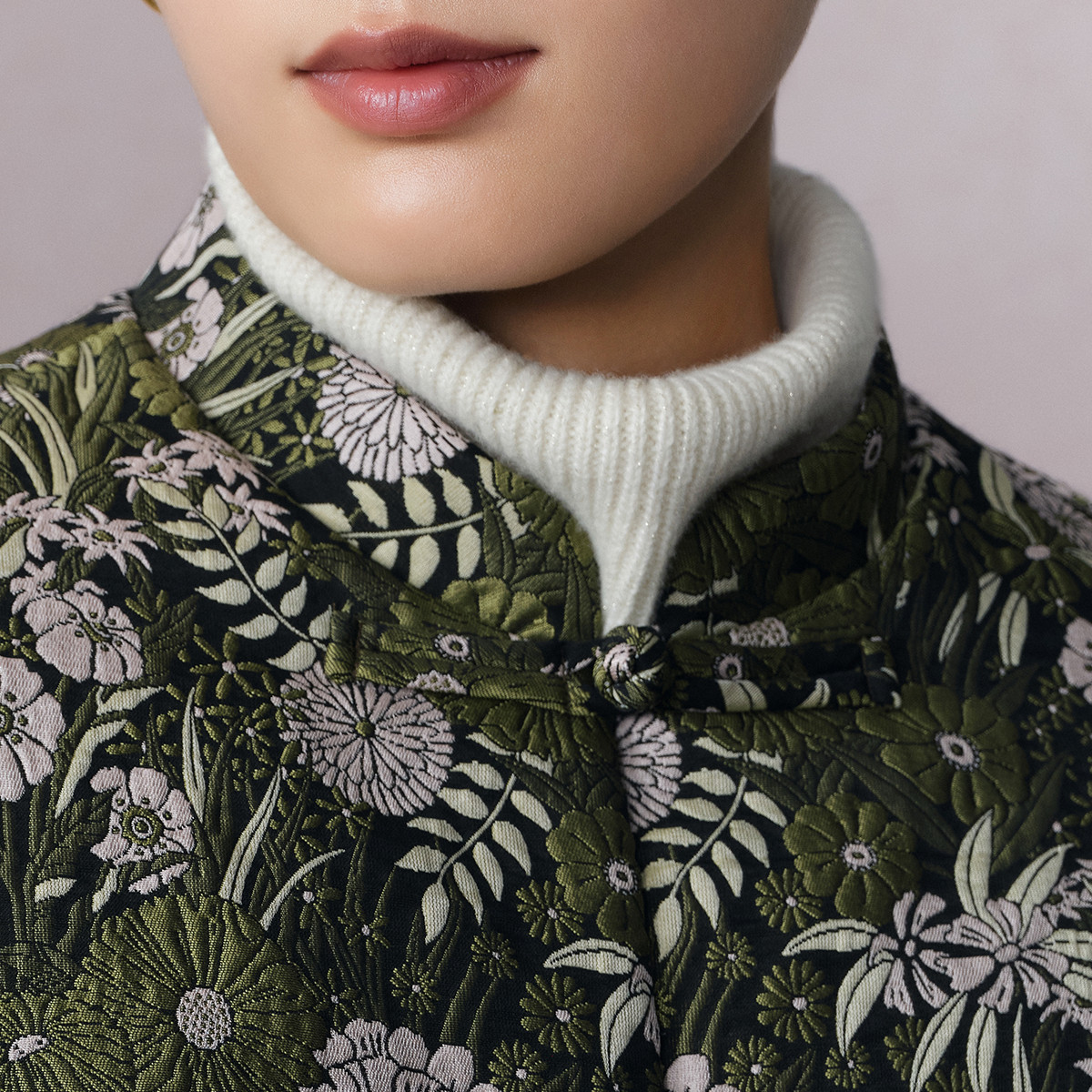 【焙雪绒梅提花】naivee纳薇冬新款羽绒鹅绒服撞色粉边经典新中式