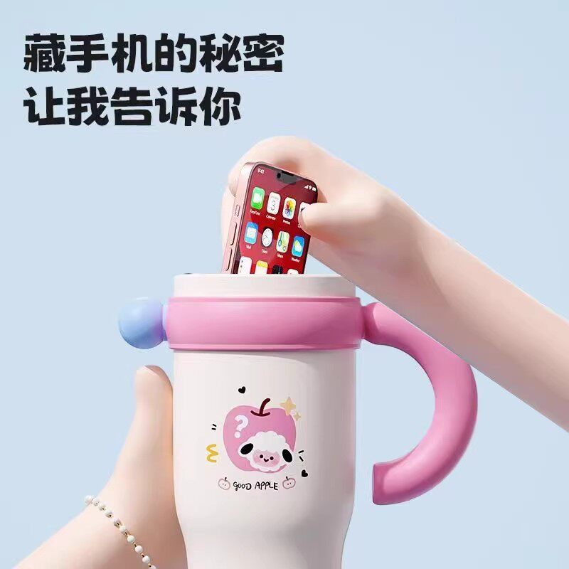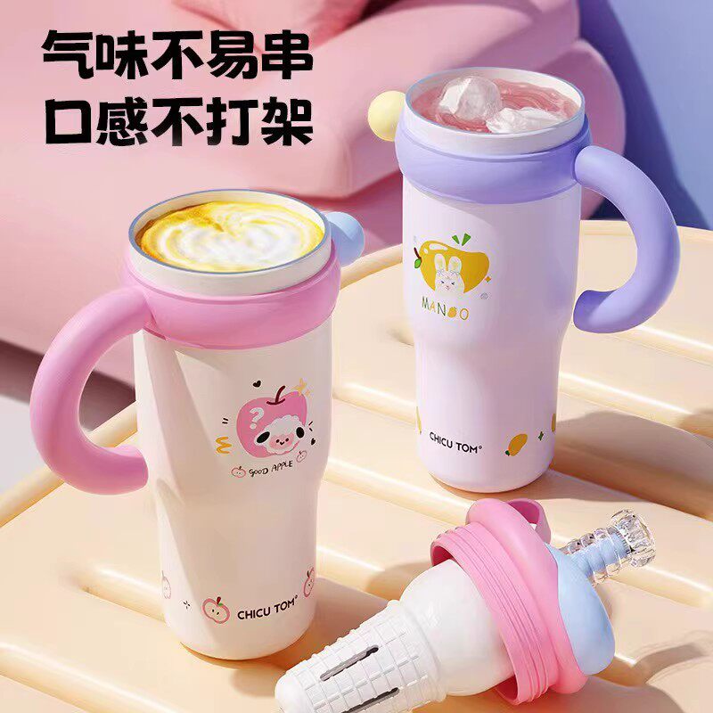 保温杯316不锈钢双饮咖啡杯大容量女高颜值随行吸管水杯情侣杯子