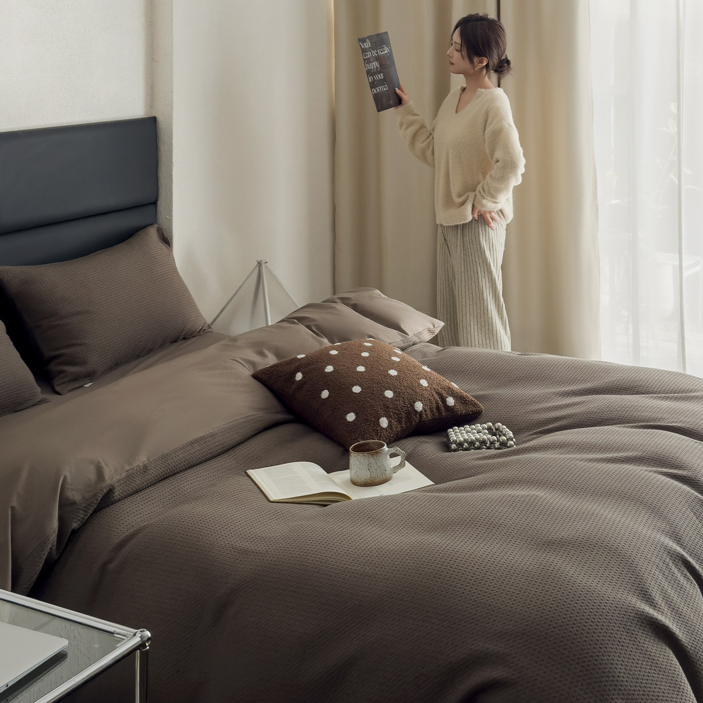 无印良品纯色秋冬牛奶绒四件套珊瑚绒床上绒三件套冬季加绒法兰绒
