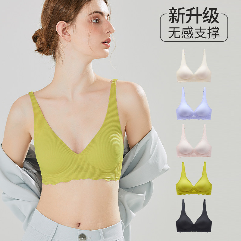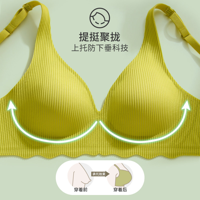 无痕内衣女小胸聚拢薄款无钢圈收副乳上托防下垂美背乳胶舒适文胸