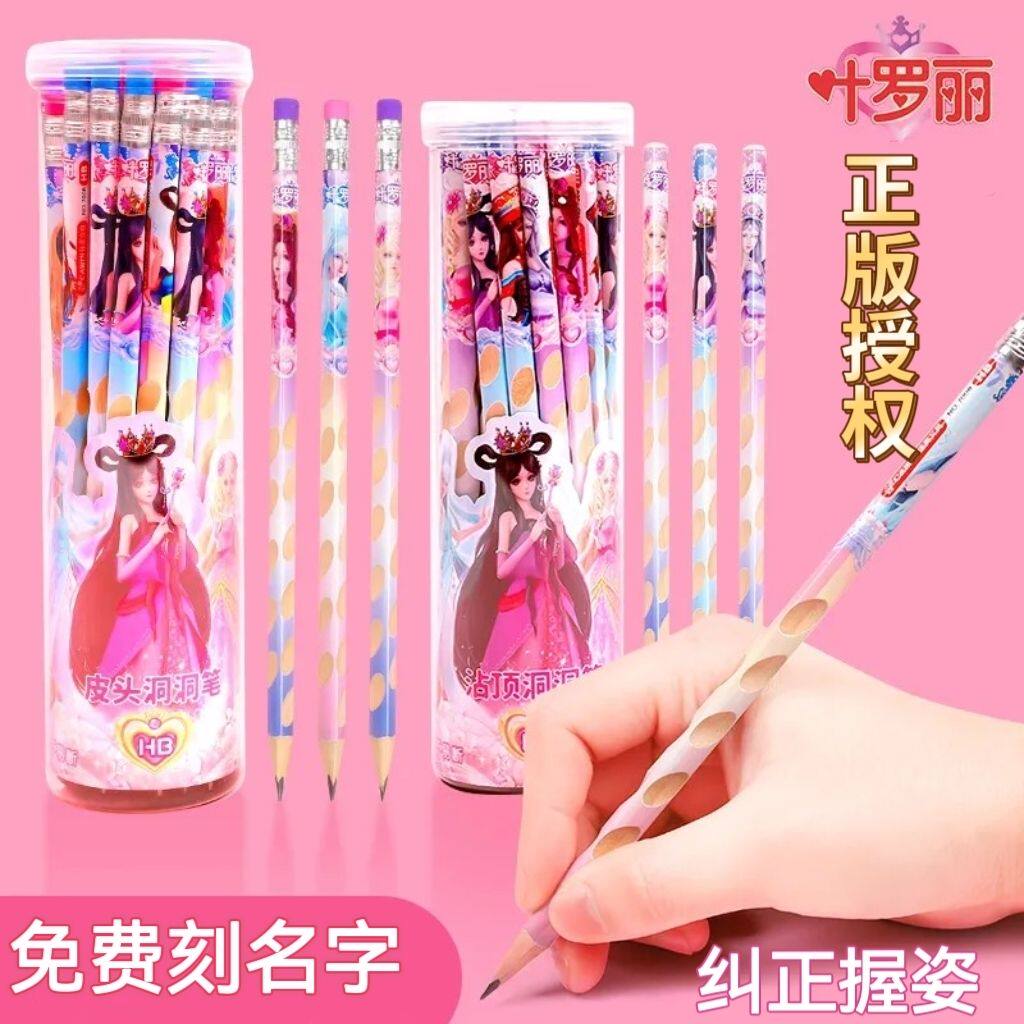定制叶罗丽洞洞刻字铅笔幼儿园小学生练字三角公主铅笔初学者正版