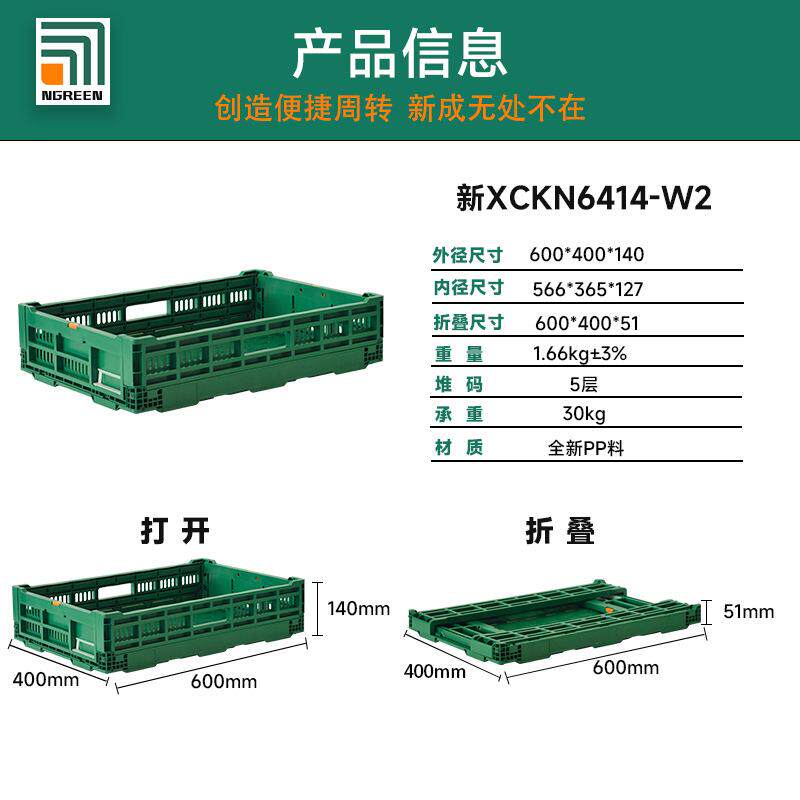 新成KN6414折叠筐运输周转筐商超物流周转筐果蔬周转箱摆货堆叠筐