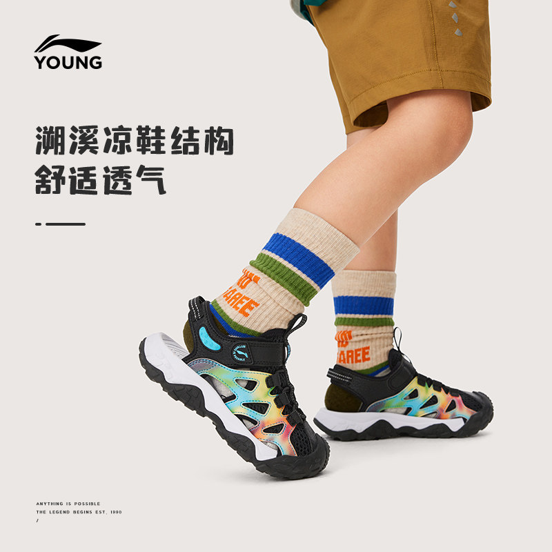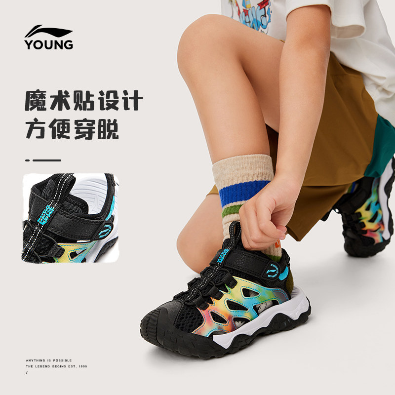 李宁童鞋凉鞋男女小童新款跋涉2 KIDS包头反光透气低帮运动鞋