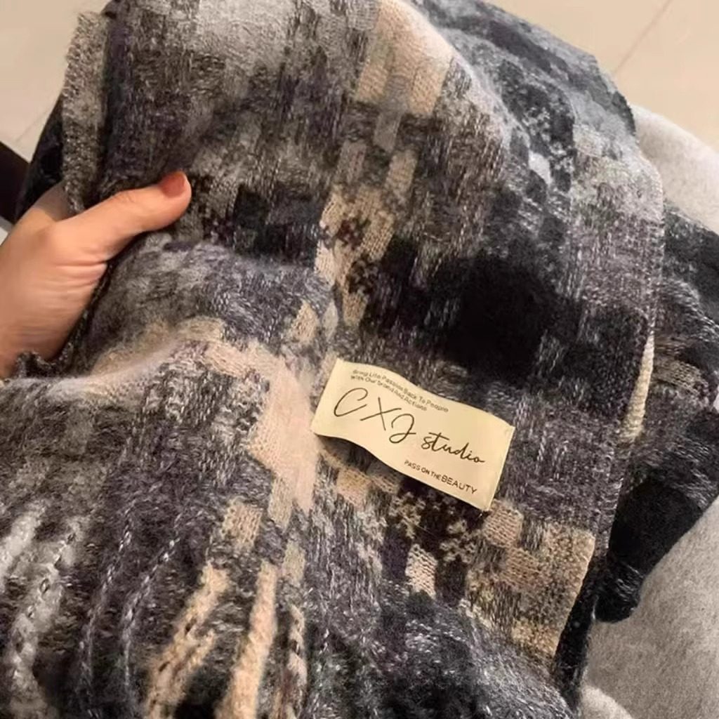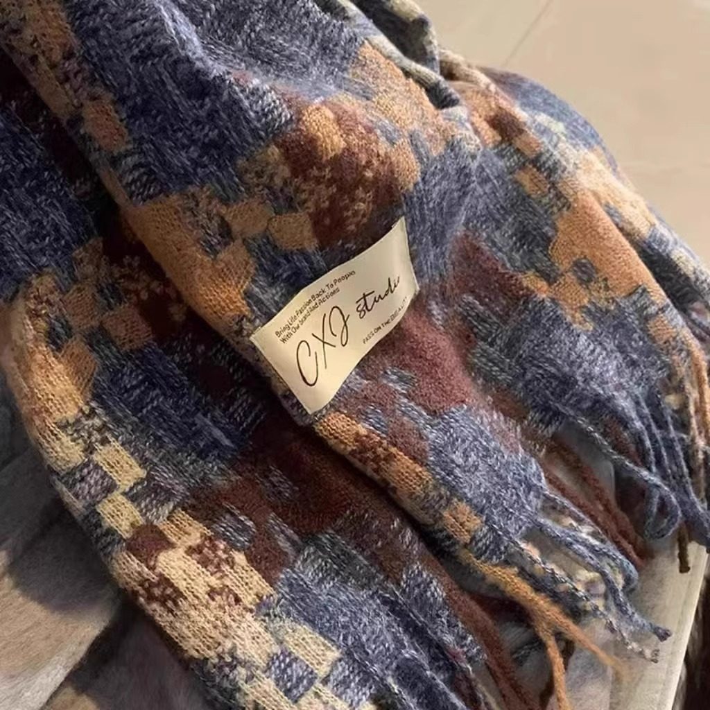 蓝色格纹围巾女款2025新款冬季韩系高级氛围感加厚情侣女士长围脖
