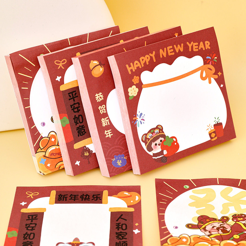 ins可爱新年便利贴 学生高颜值春节装饰留言贴卡通学习文具N次贴学习办公便签条记事50张