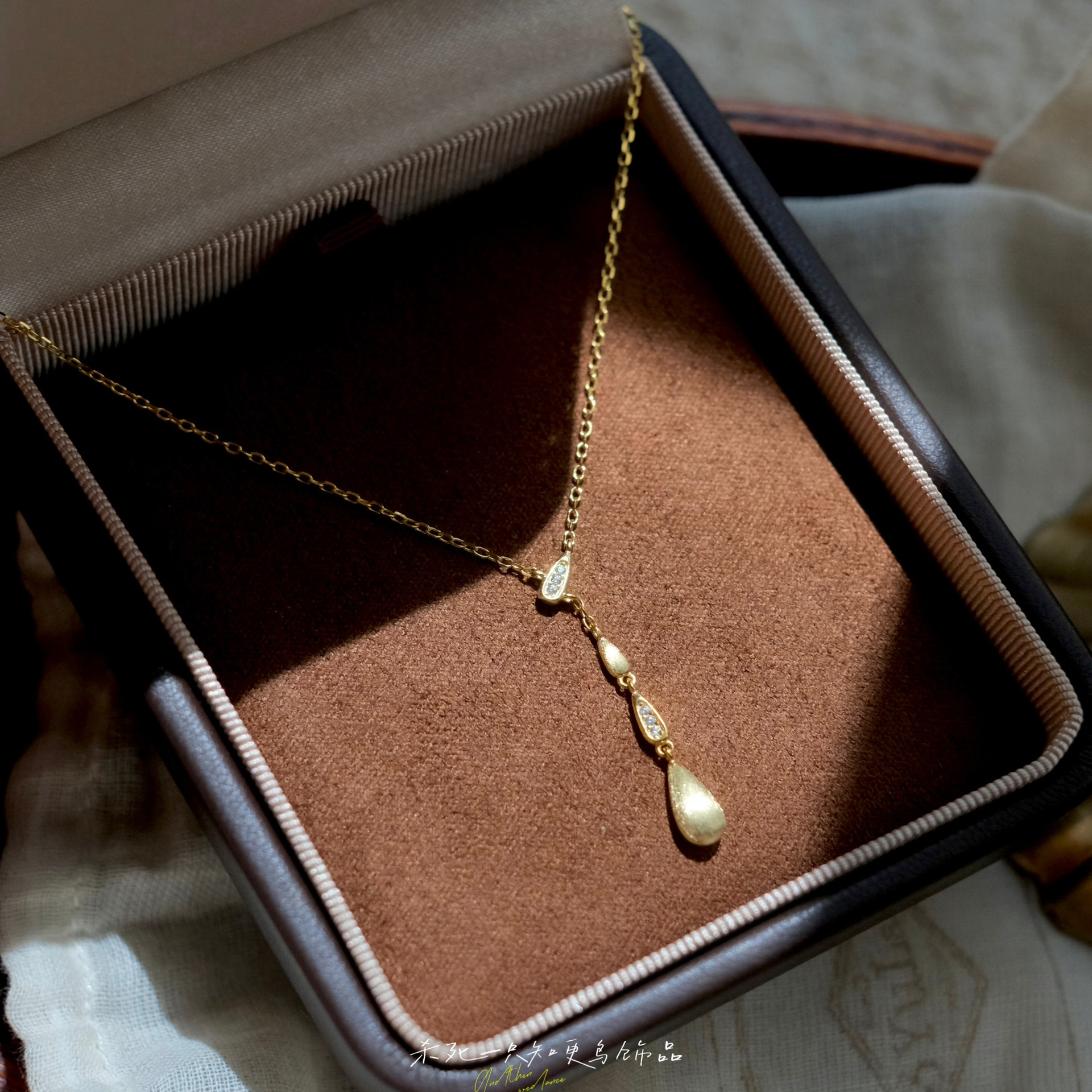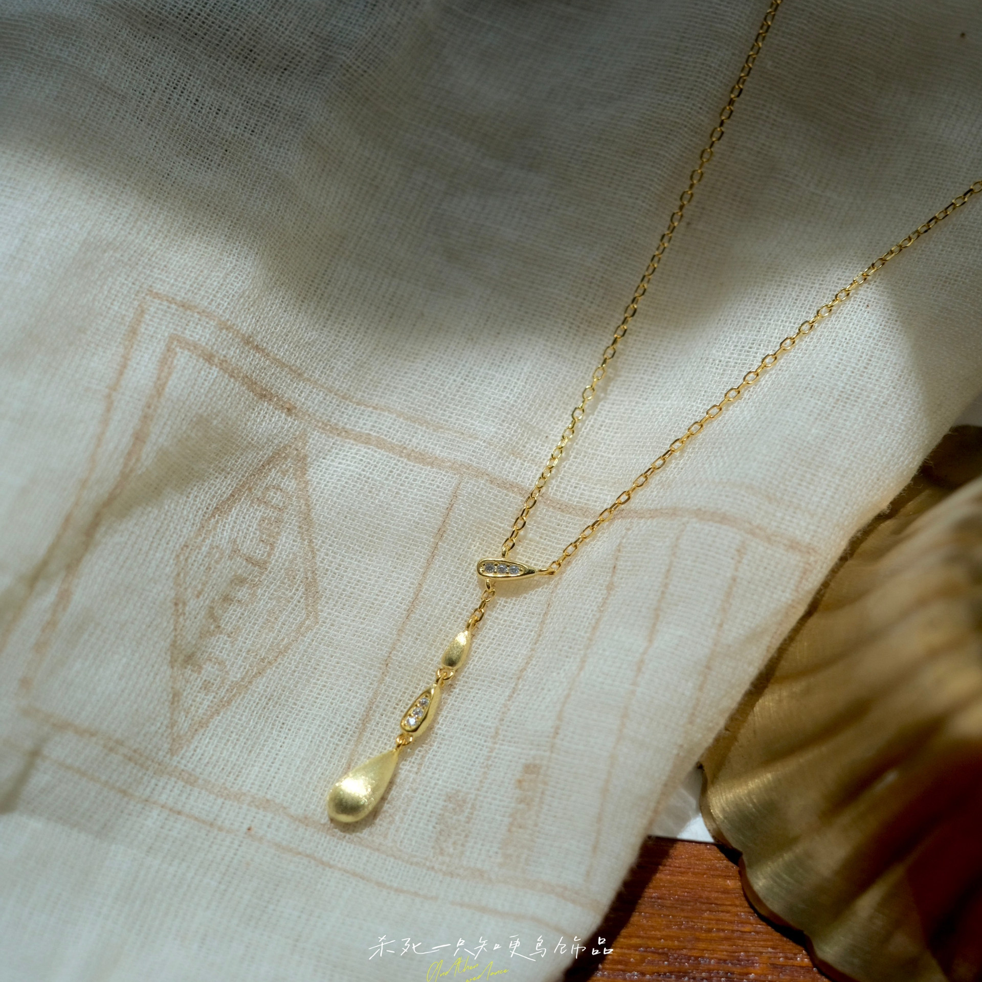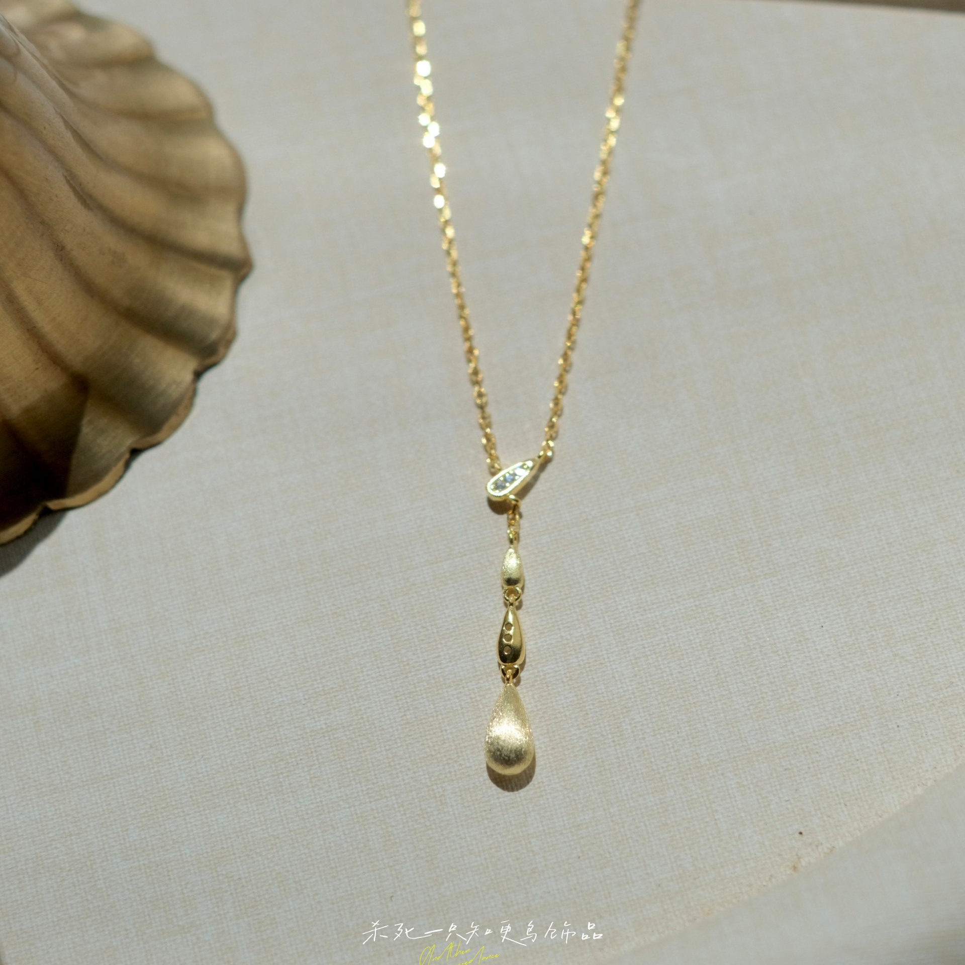 《一滴泪》S925银镀真金轻奢高级感拉丝磨砂金色水滴项链锁骨链女