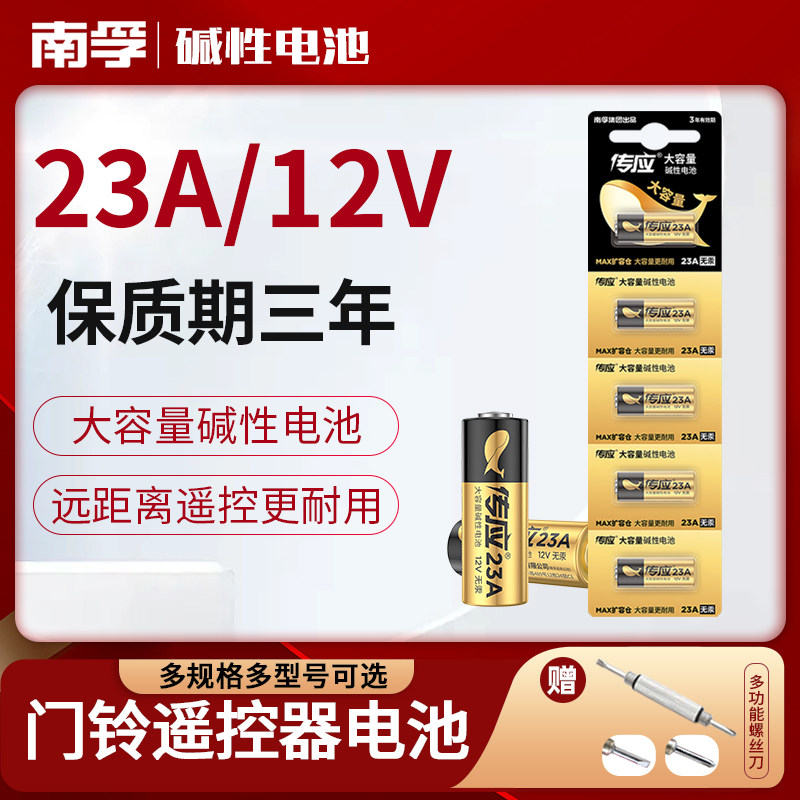 南孚传应23A 12V门铃纽扣23a12v遥控器电池红外防盗引闪器23a12v电动风扇433车库道闸卷帘门23安12伏小l1028