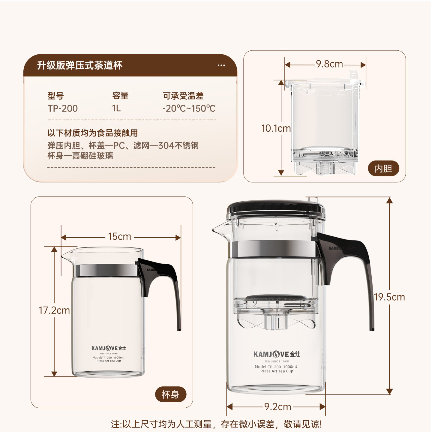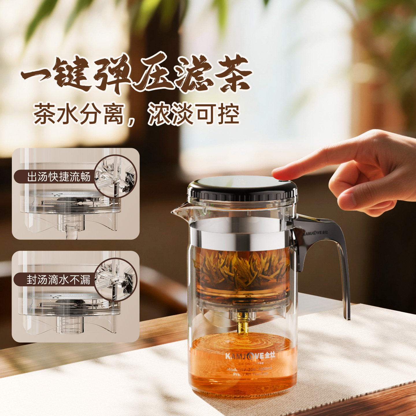 1000ml大容量 一键茶水分离 可拆洗内胆