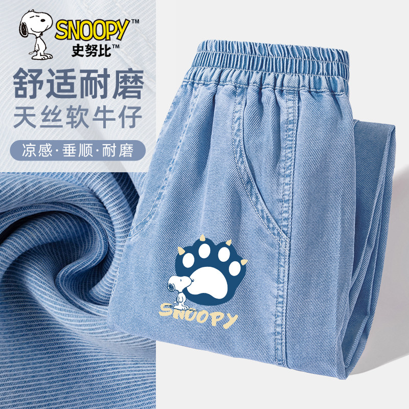 史努比男童天丝牛仔裤2025新款帅气男大童宽松防蚊裤儿童薄款裤子