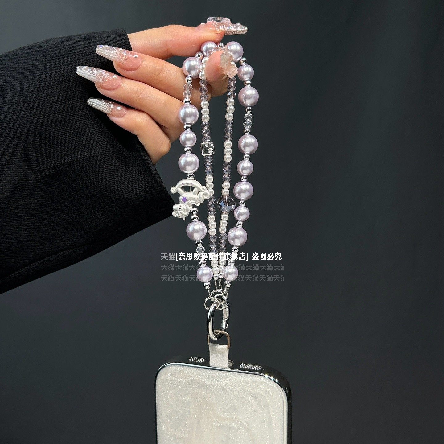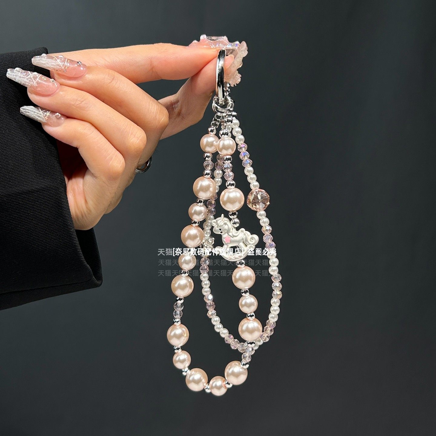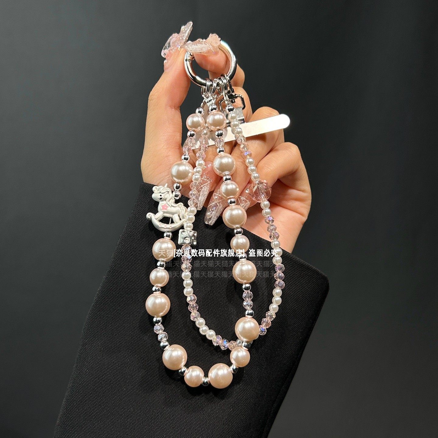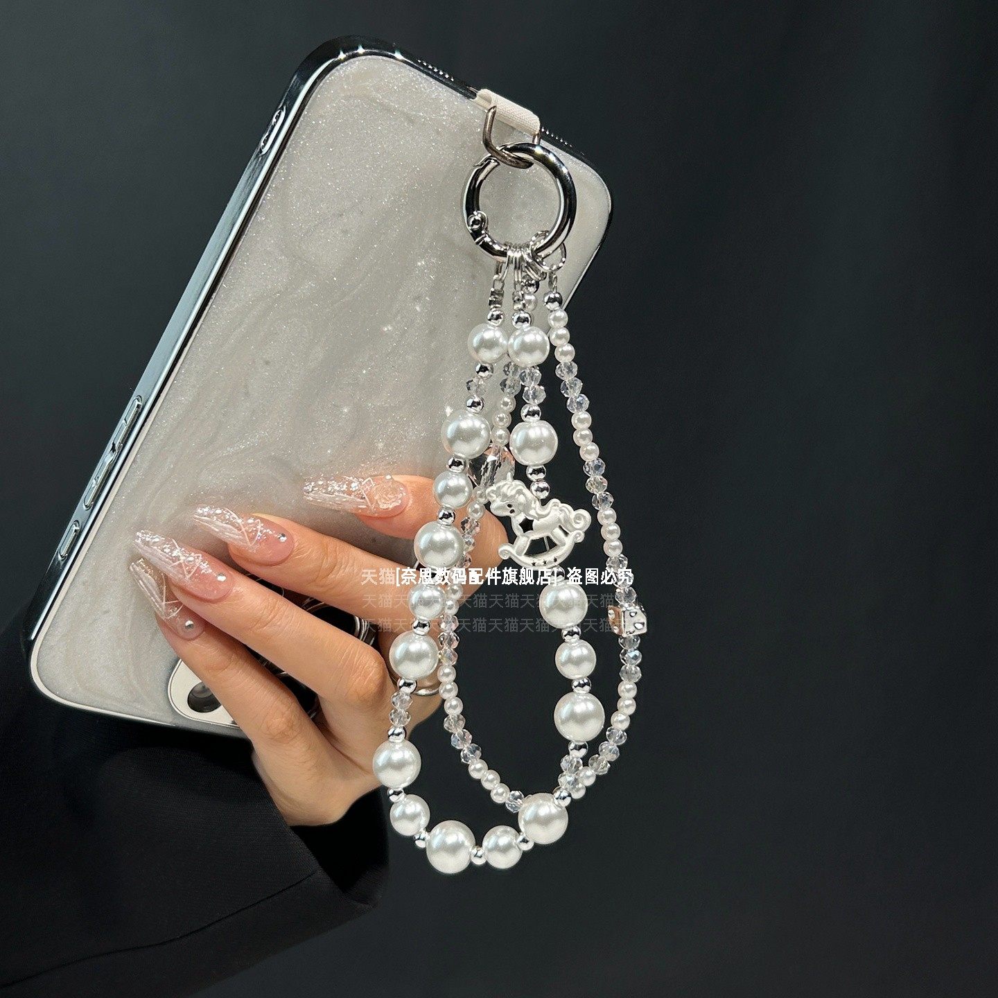 新款手腕绳手机链可爱木马珍珠链条马年水晶串珠漂亮挂链高级好看腕带防丢手链钥匙扣包包垫片腕链轻奢精致壳