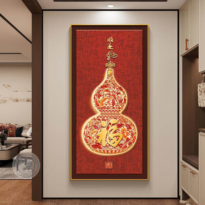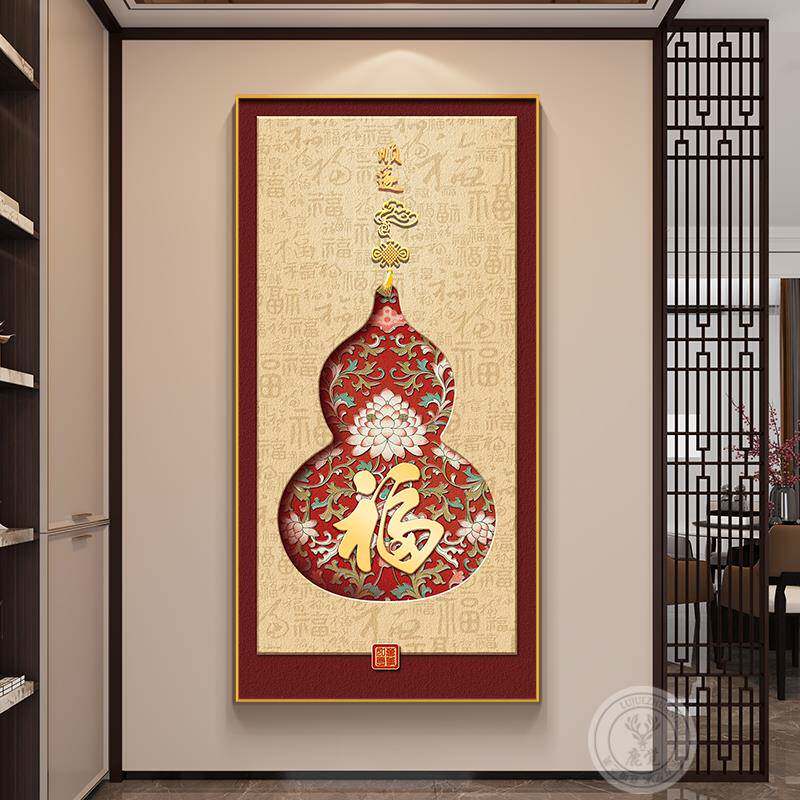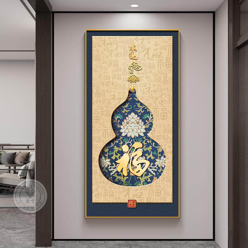福禄葫芦玄关装饰画新中式入户正对门挂画百福图客厅走廊尽头壁画