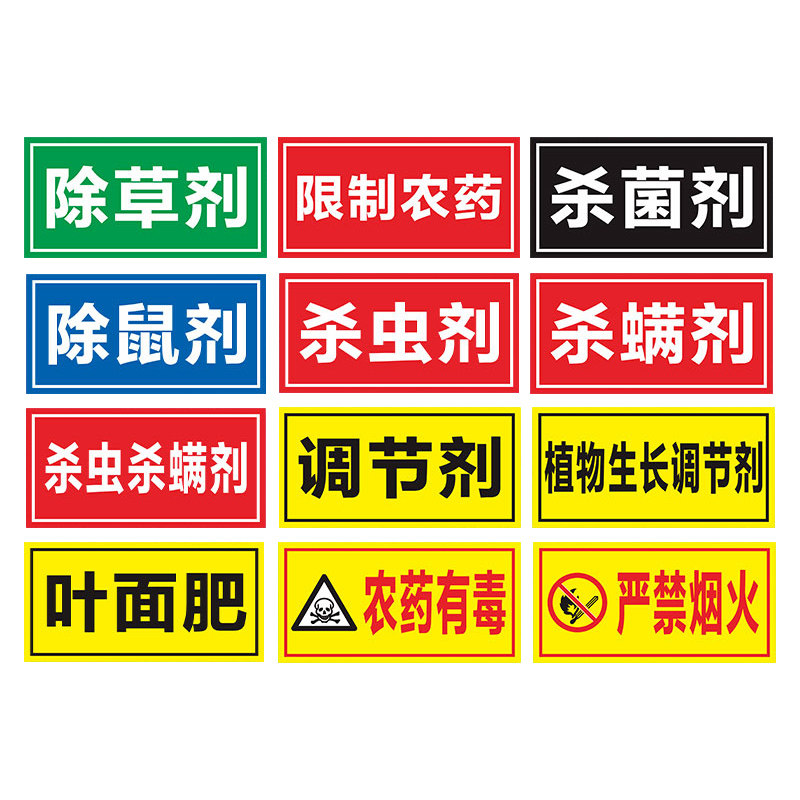 国标颜色农药分类标签全套标识牌农资货架区域分区提示牌杀虫杀菌剂除草剂农药有毒警示标志牌禁止吸烟订制做