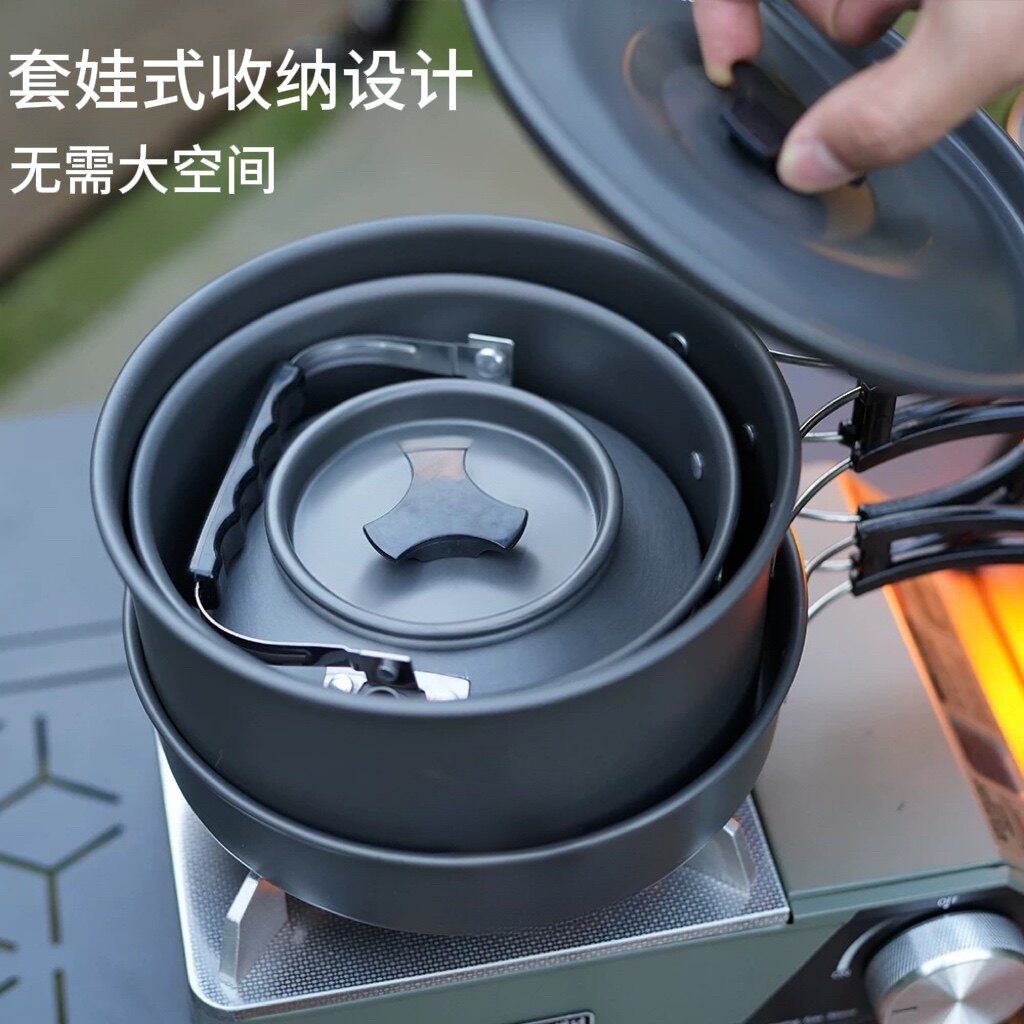 户外锅具便携式露营炊具野炊烧水壶多功能野营专用不沾锅卡式炉具