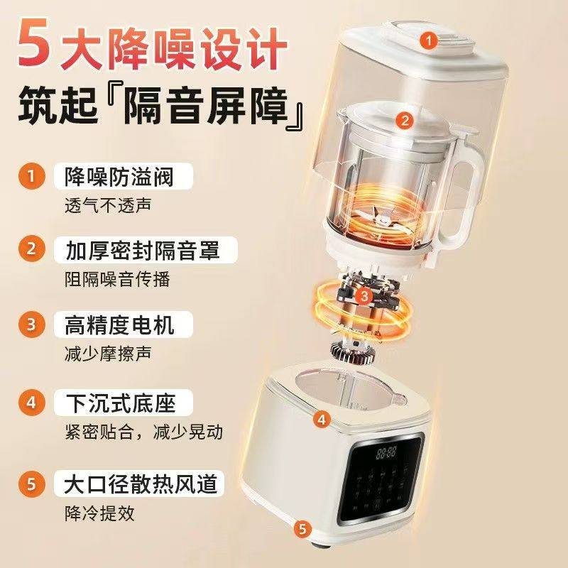 申花新款隔音罩破壁机家用全自动多功能免滤加热料理榨汁豆浆机