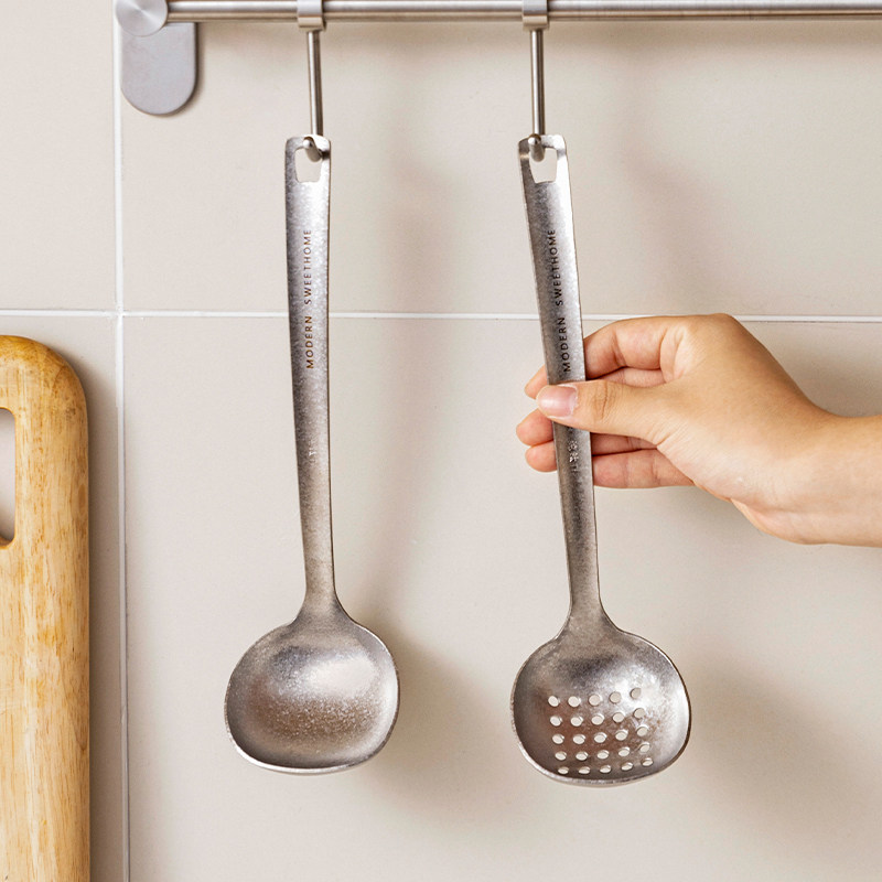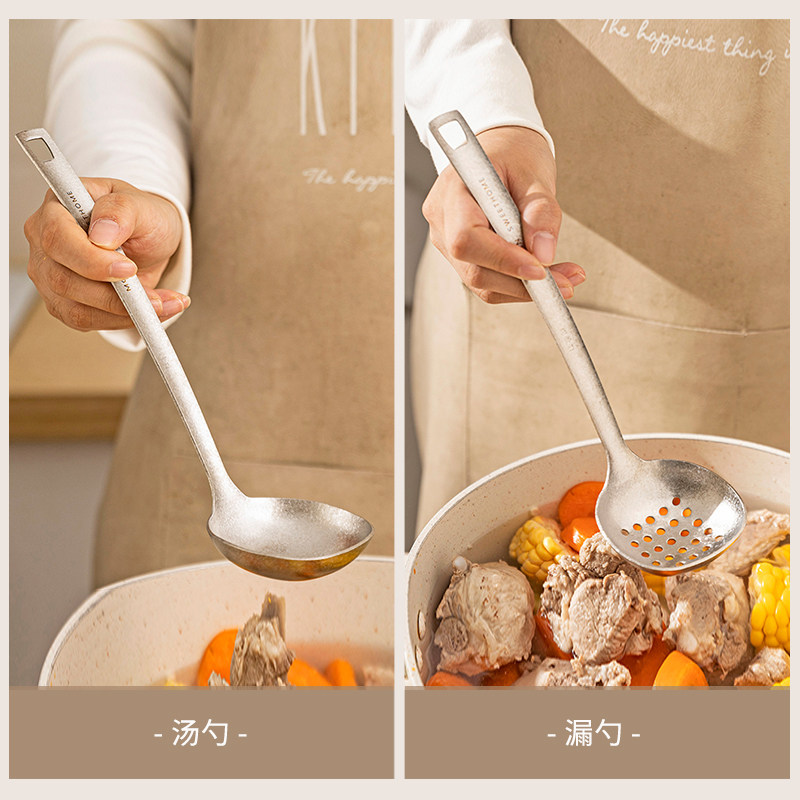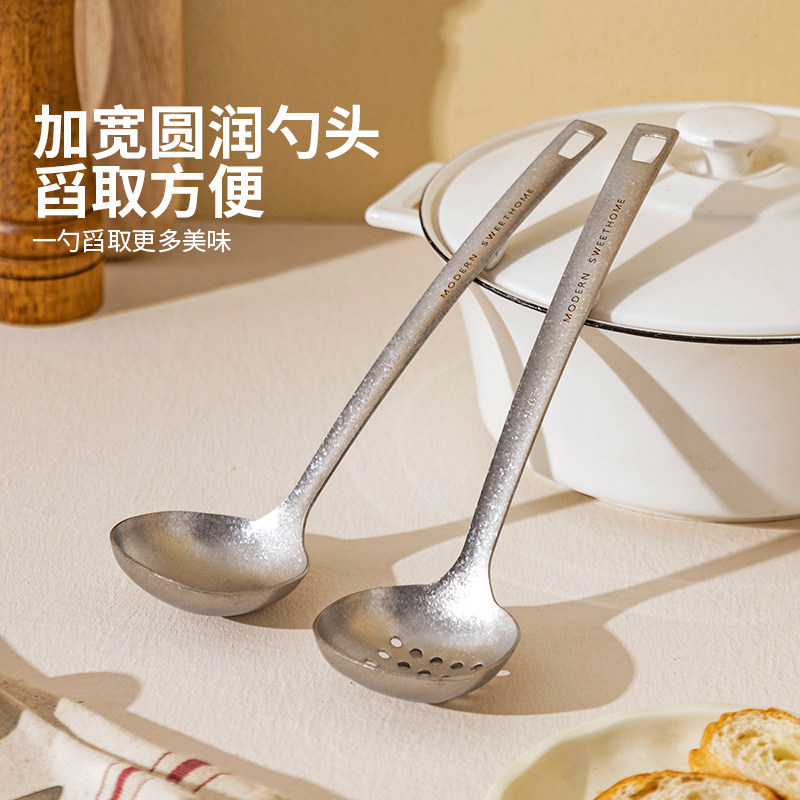 摩登主妇纯钛汤勺家用高档精致长柄大号火锅漏勺食品级盛汤粥勺子