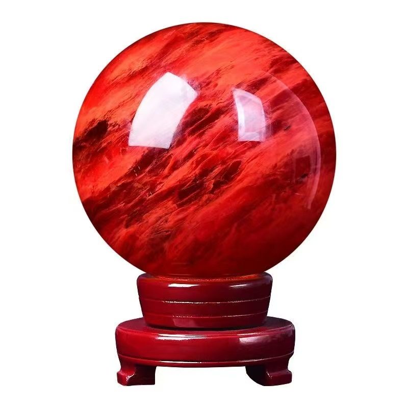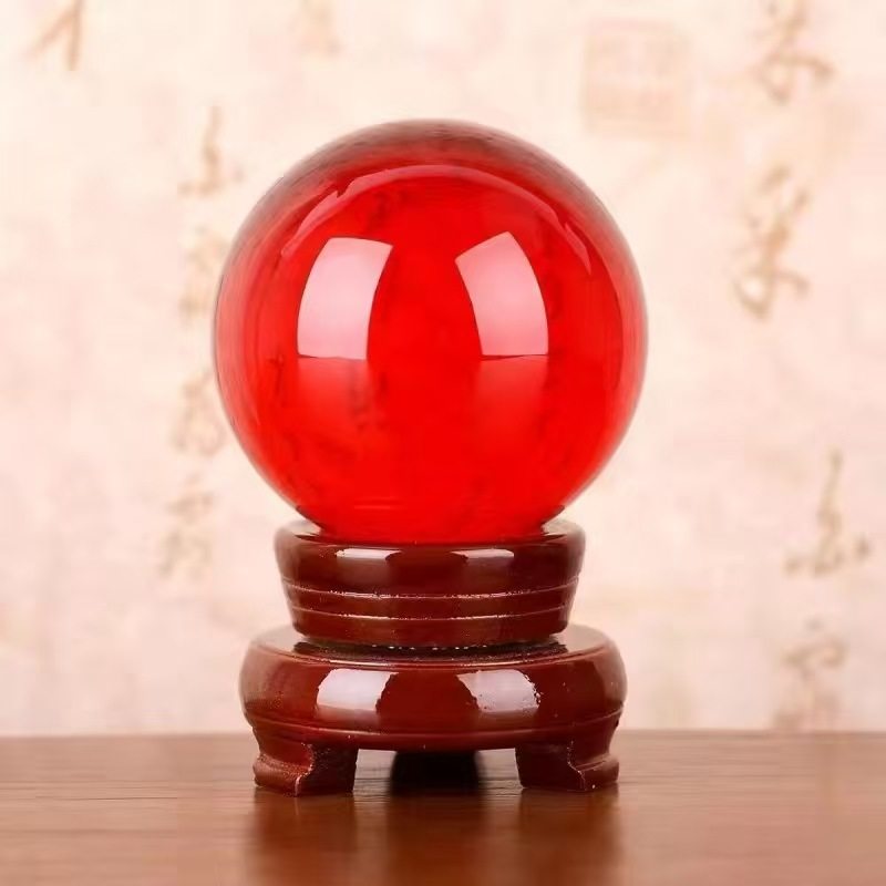 红水晶球摆件招财办公桌开业礼品鸿运当头乔迁大吉红球红色