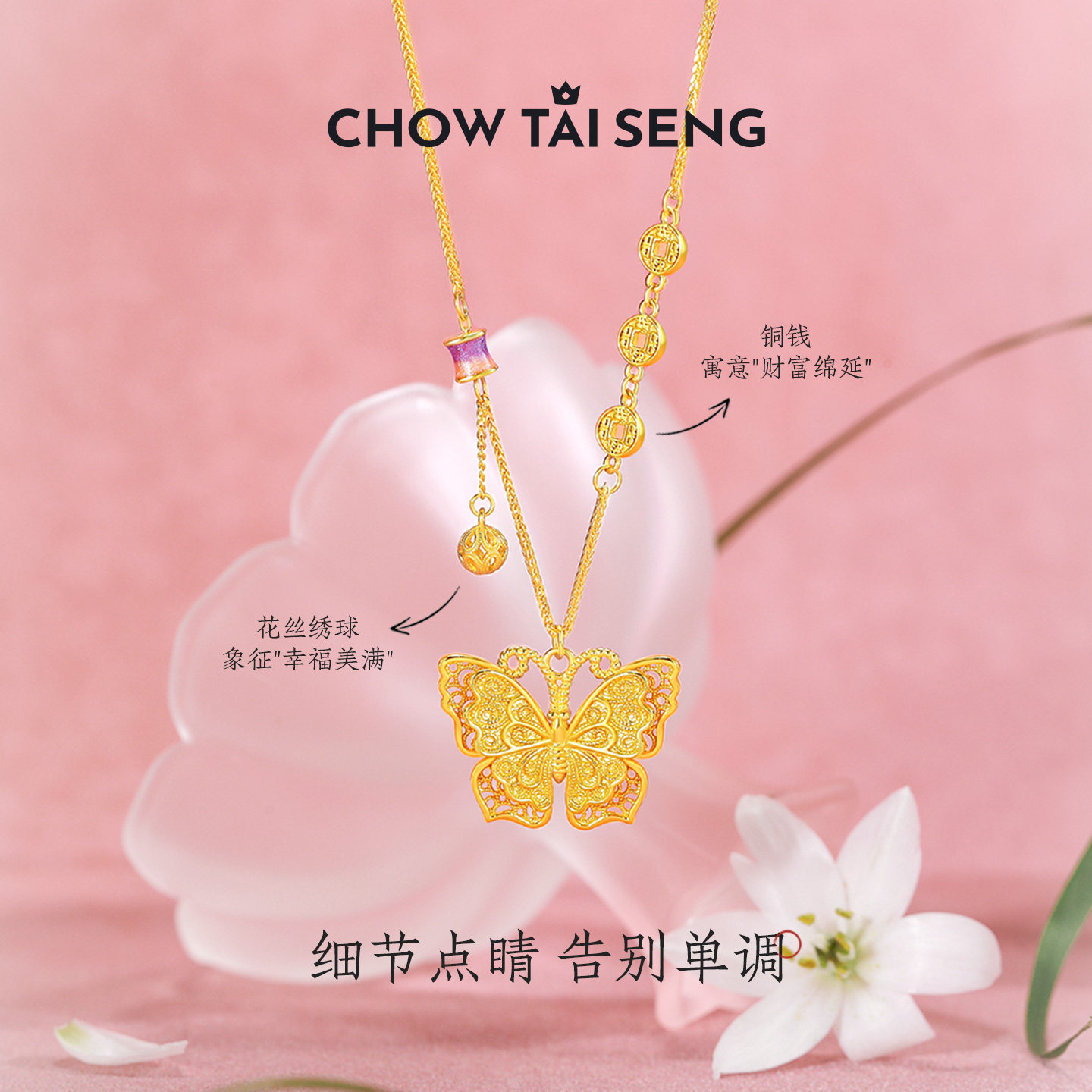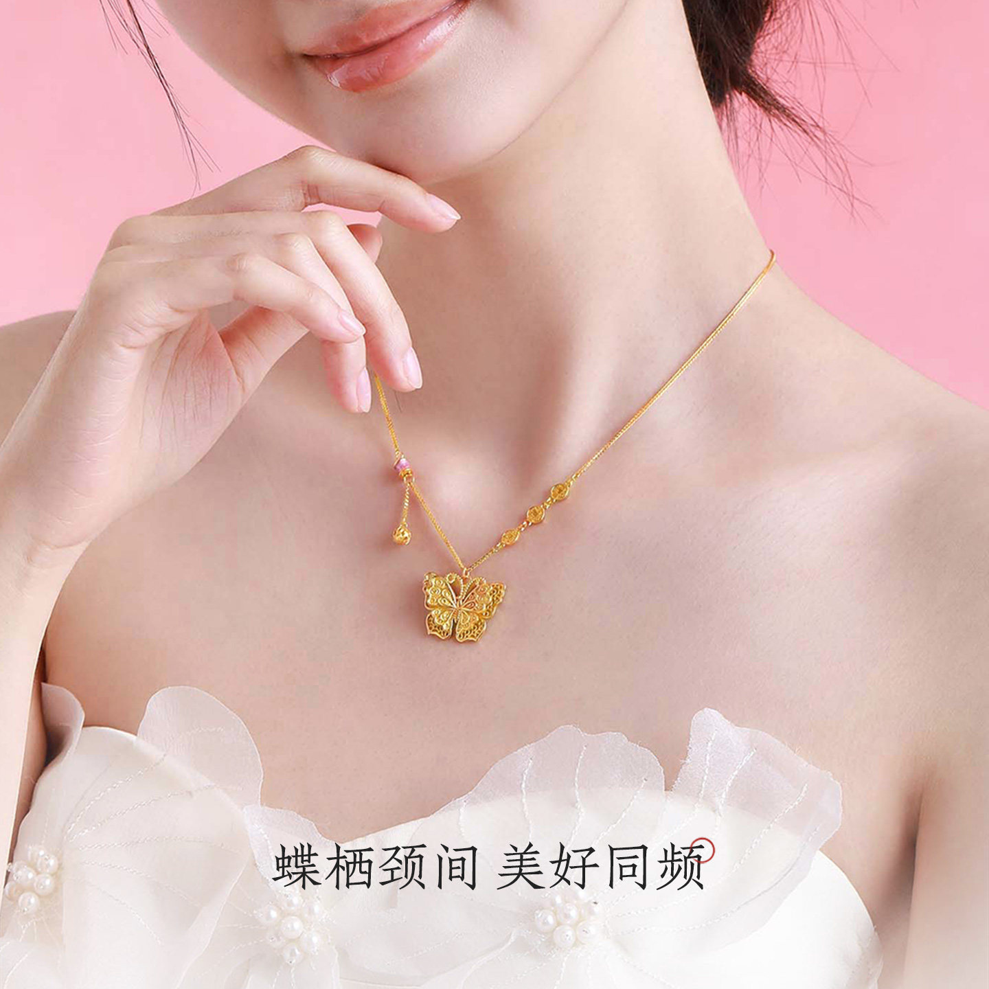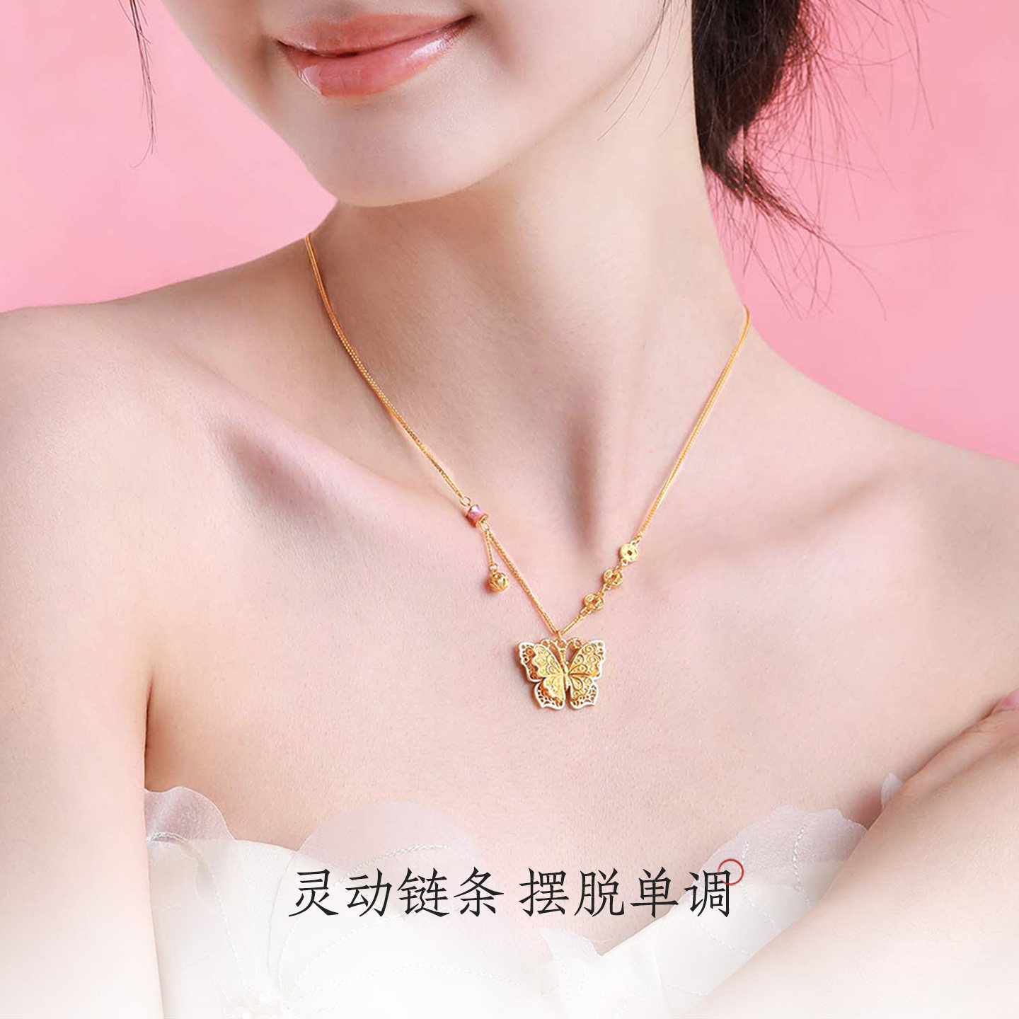 周大生玲珑花蝶蝴蝶项链女纯银国潮珐琅秋冬配饰锁骨链生日礼物