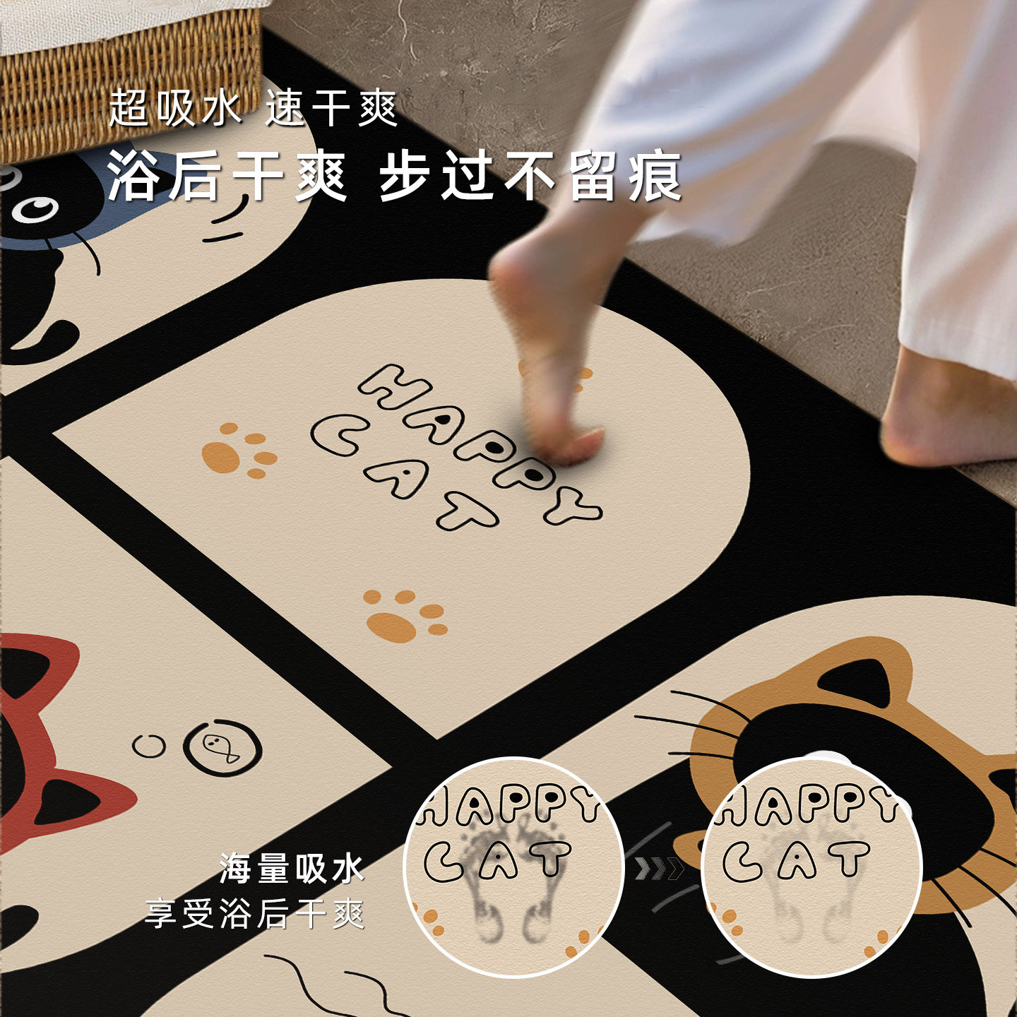 圣卡罗帝硅藻泥浴室卫生间卡通吸水地垫厕所速干防滑踩脚垫小地毯
