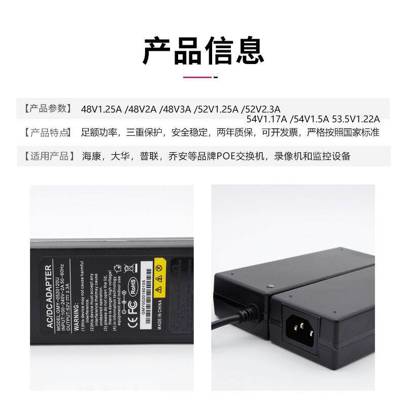 48V3A电源适配器海康POE交换机监控录像机52伏2.3a1.25a48v2a电源