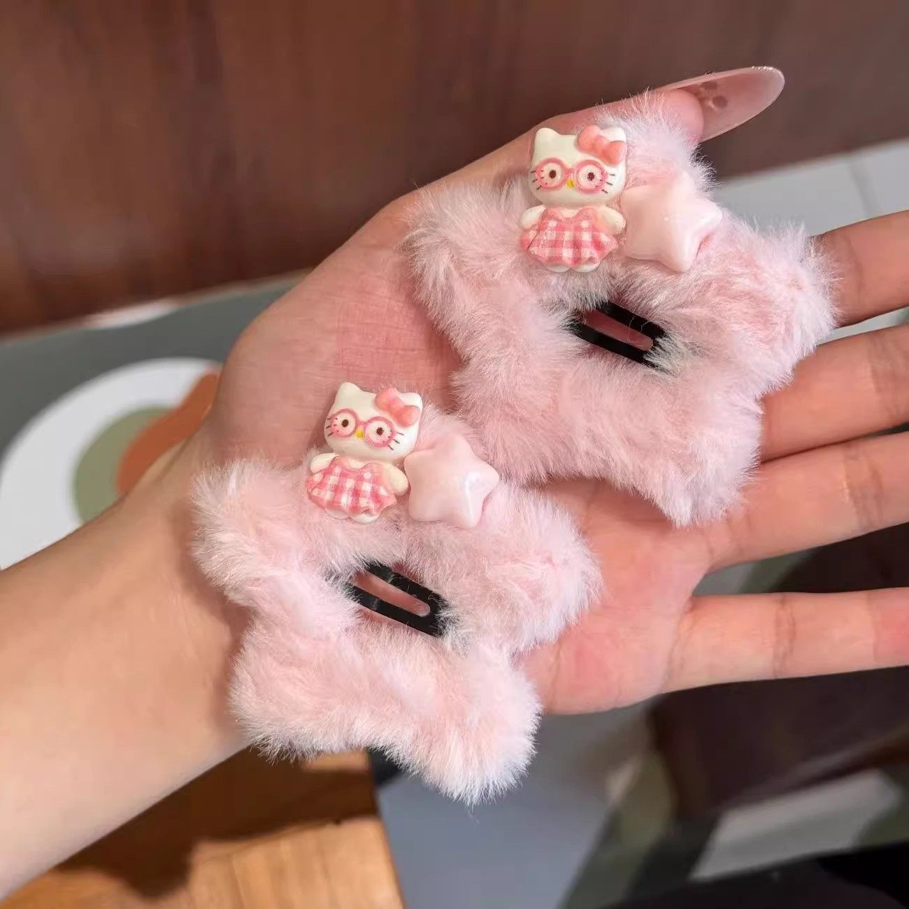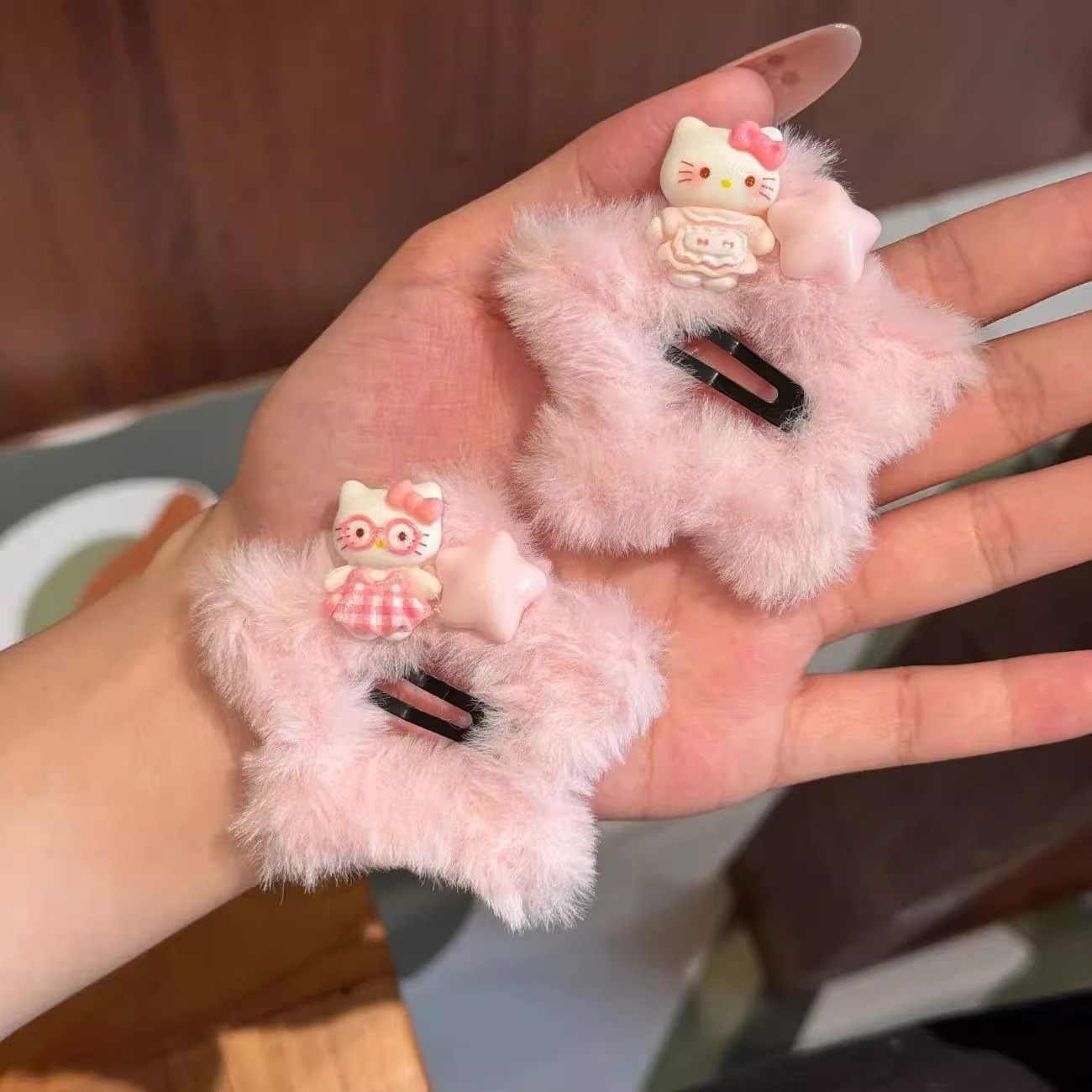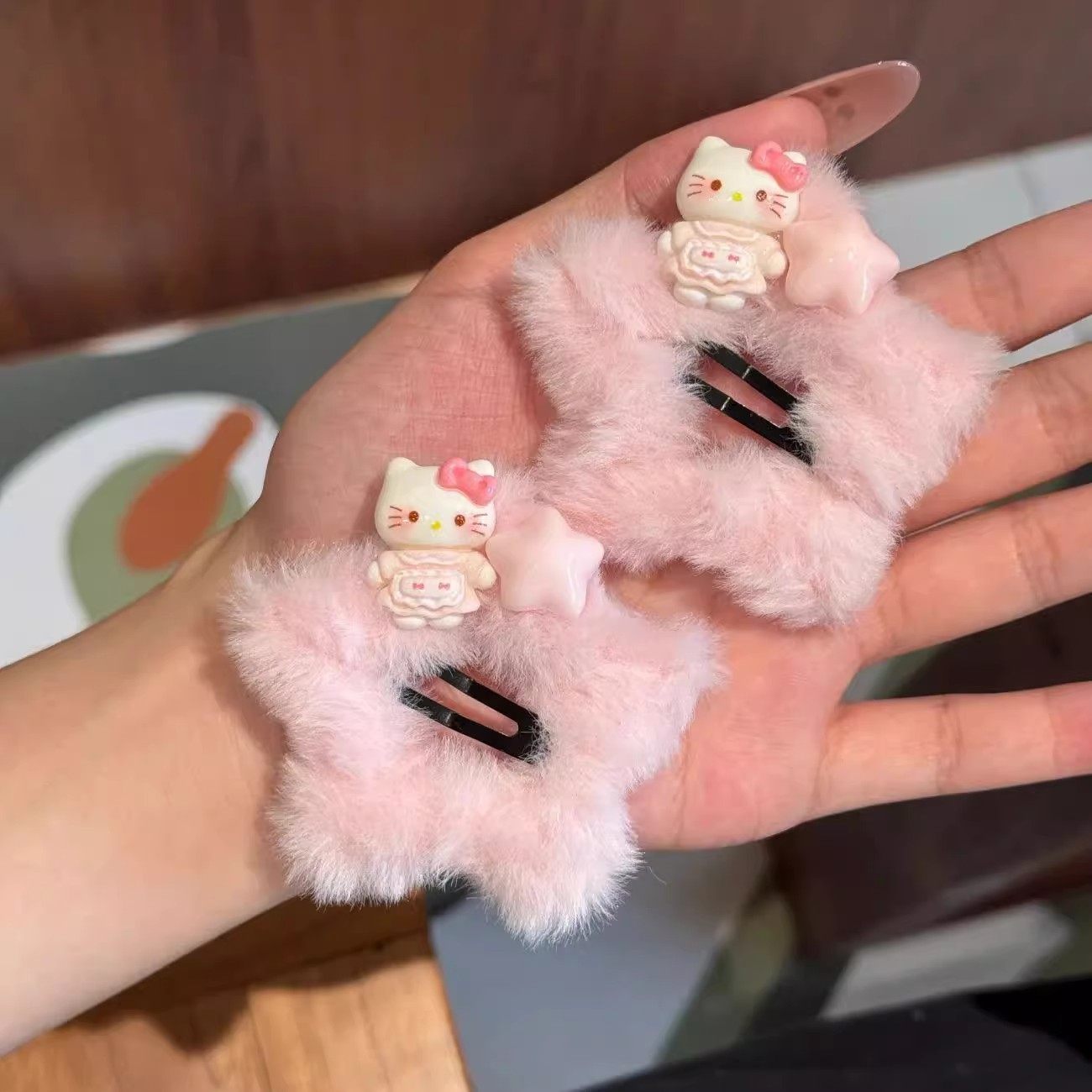 秋冬猫咪星星毛茸茸甜美粉色星星发夹少女毛绒星星刘海BB五角星