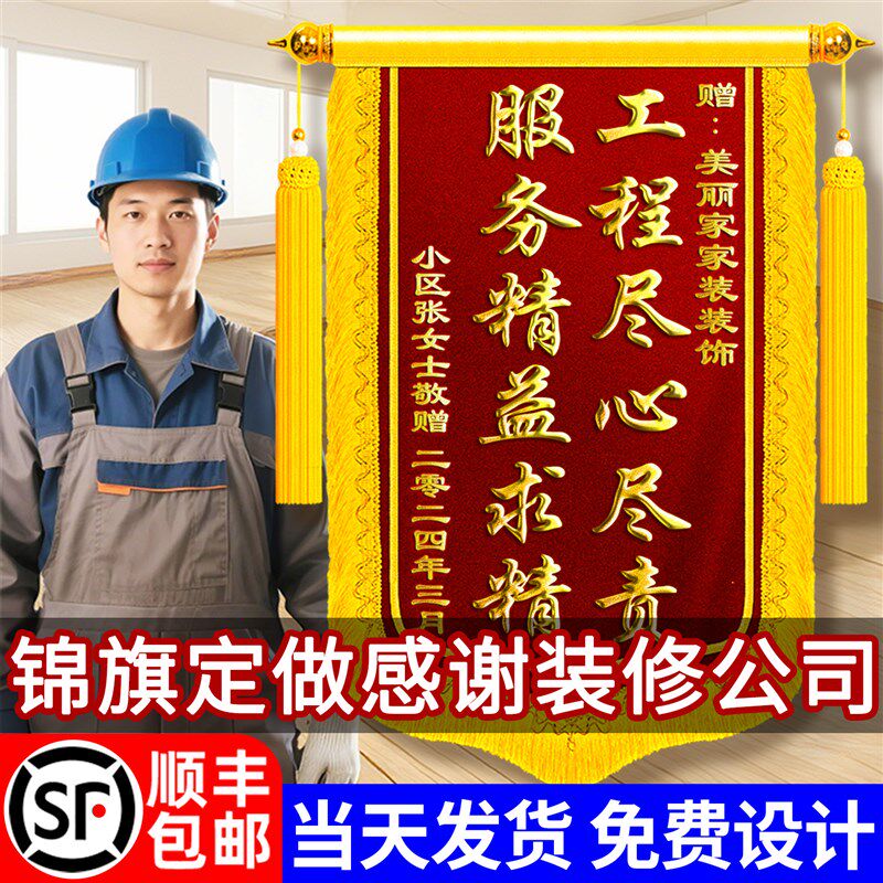 锦旗定做a感谢装修公司旌旗订做赠送给工程部师设计师专案经理装