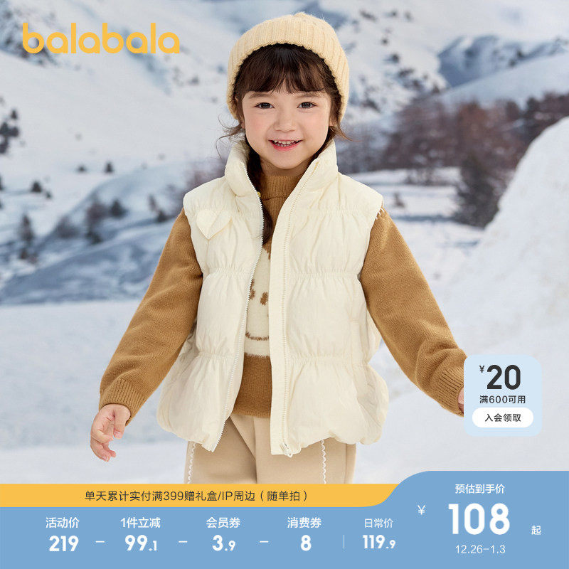巴拉巴拉童装儿童羽绒马甲女童男童外穿新款2025冬装高充绒保暖潮