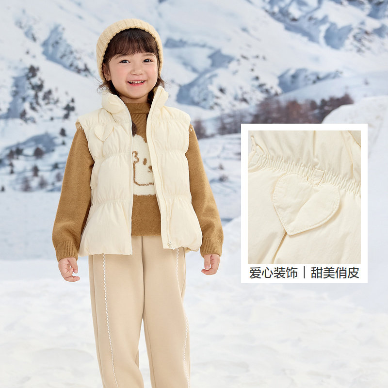 巴拉巴拉童装儿童羽绒马甲女童背心秋冬装2025皱感立领外套时尚潮