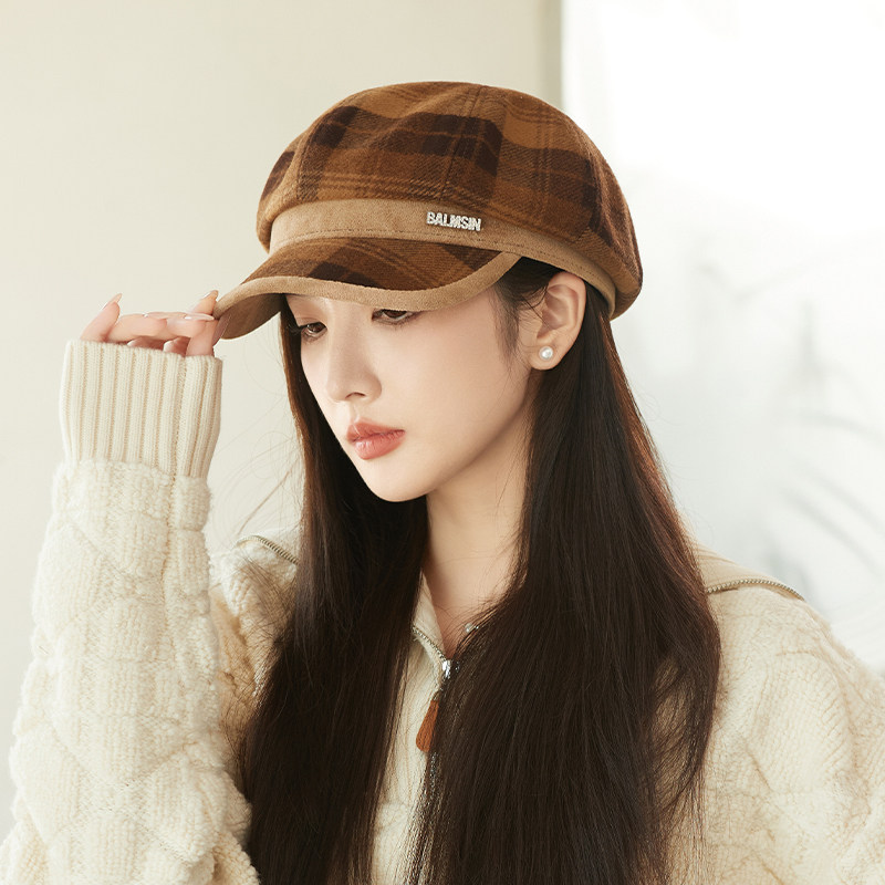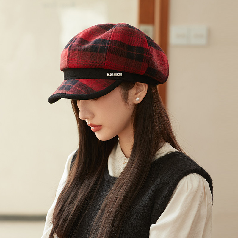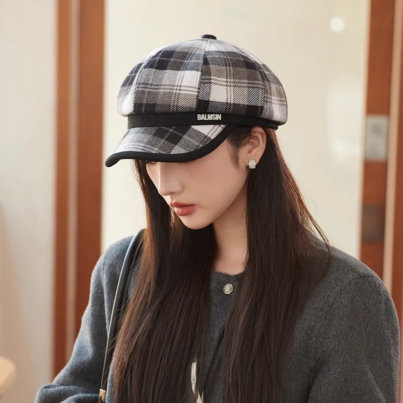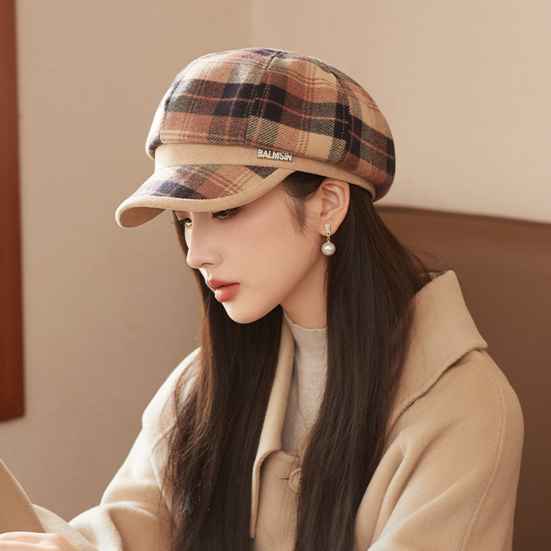 新款韩版格子八角帽女英伦复古鸭舌贝雷帽百搭学院画家报童帽