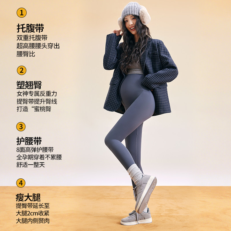 英氏孕妇打底裤2025秋冬新款外穿瑜伽裤孕妇双重提拉托腹塑形提臀