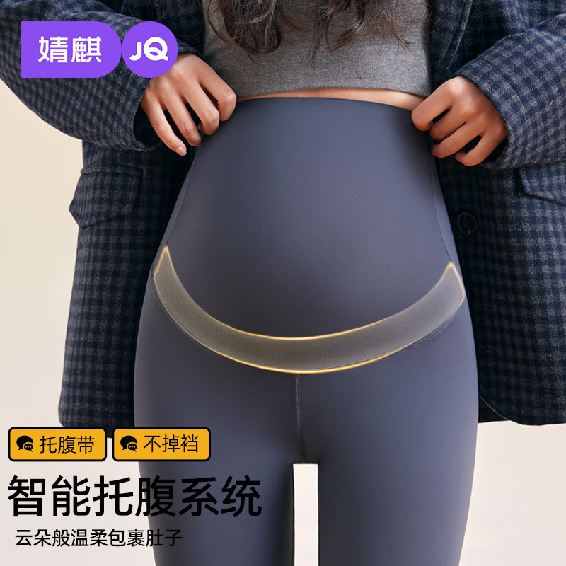 婧麒孕妇裤秋冬款外穿鲨鱼打底裤不勒肚子托腹长裤孕妇装2025新款