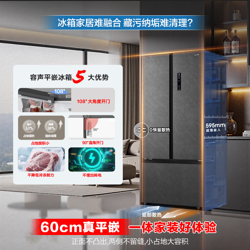 容声541L主动双净双系统T型门家用超薄嵌入式电冰箱方糖一级能效