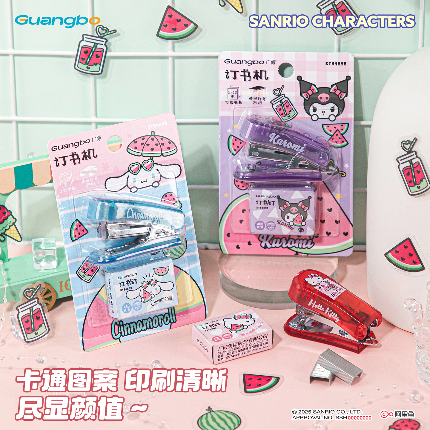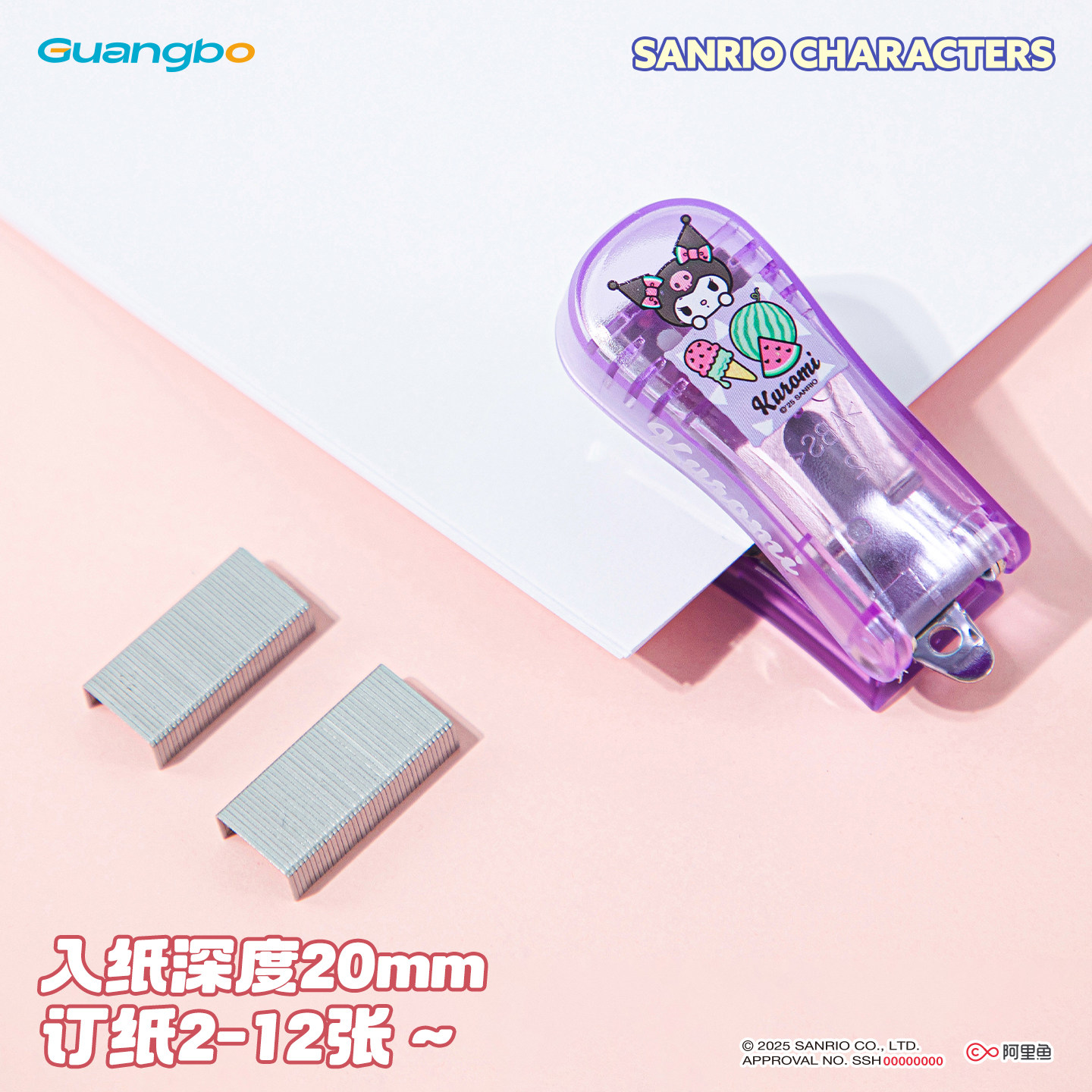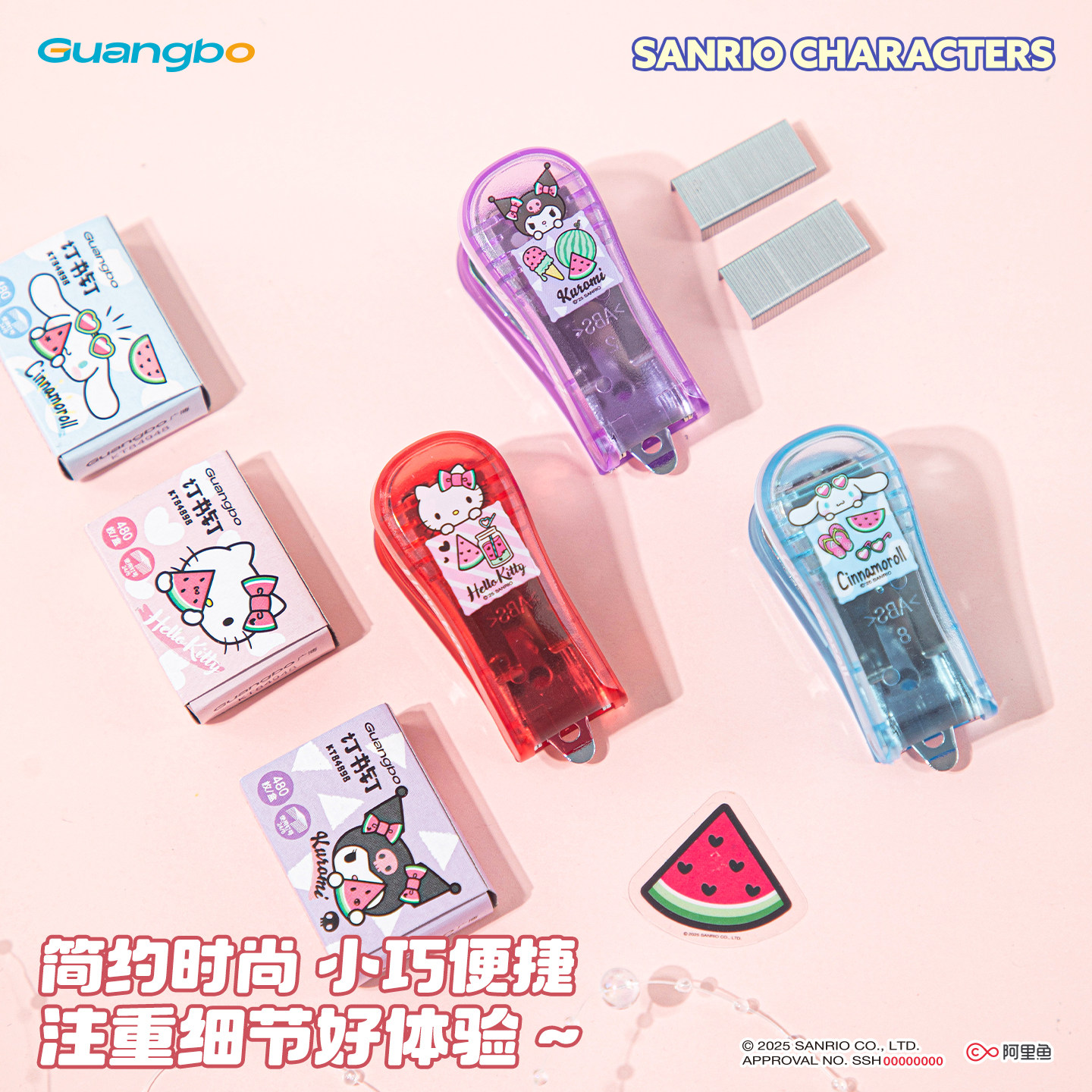 广博三丽鸥学生订书机小号送订书钉美乐蒂订书器学生专用用迷你订书机套装库洛米小订书机便携订书器学生用品