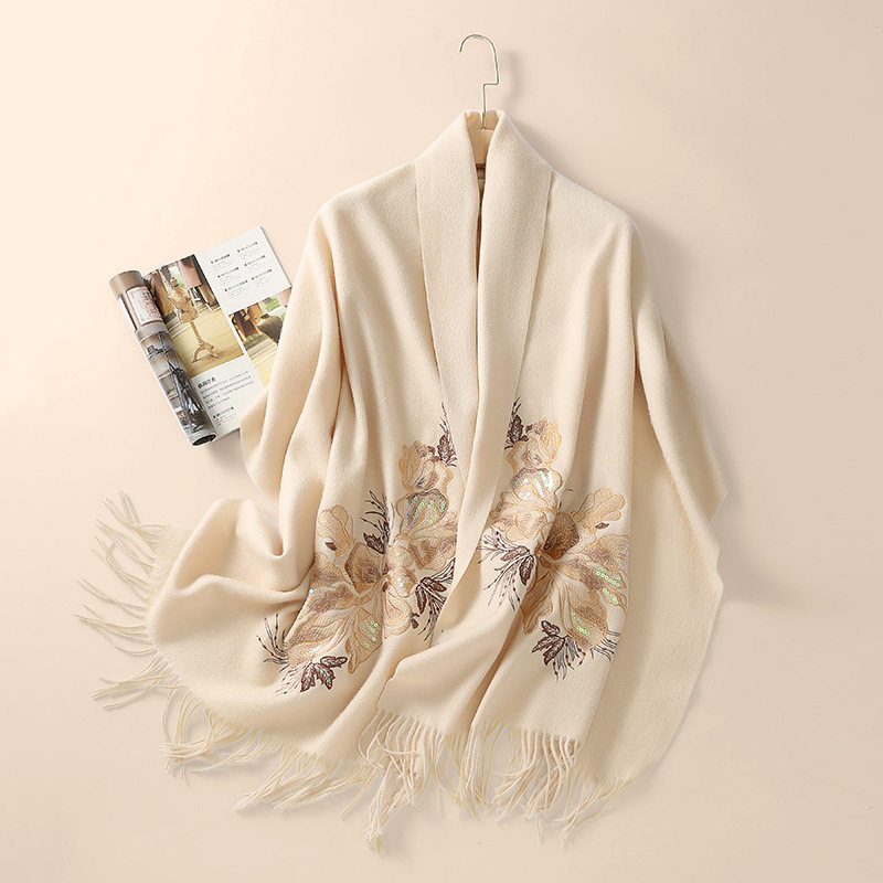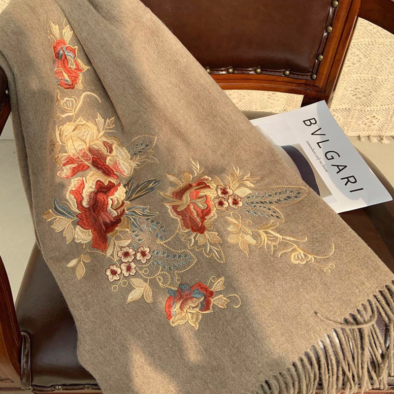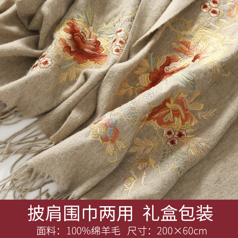 羊毛围巾女冬季百搭旗袍披肩送妈妈长辈礼物时尚刺绣披肩外搭